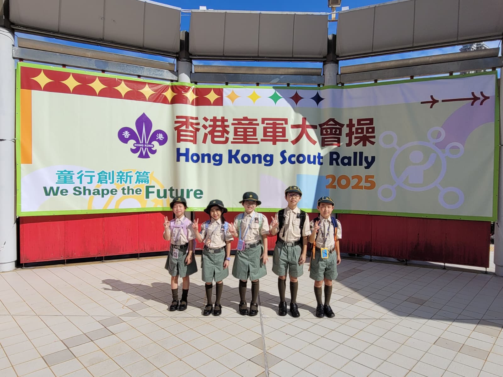 本校幼童軍成員於10月26日(星期日) 到香港大球場參加了由香港童軍總會主辦之【2025年香港童軍大會操】,活動內容包括覆誓、升旗及步操表演、童軍樂隊表演及頒發各項獎章及證書。本屆活動很榮幸獲得香港特別行政區行政長官李家超先生親臨主禮,讓各童軍成員聚首一堂,覆誓童軍誓詞,重申「對神明,對國家,盡責任;對別人,要幫助;對規律,必遵行」的承諾。