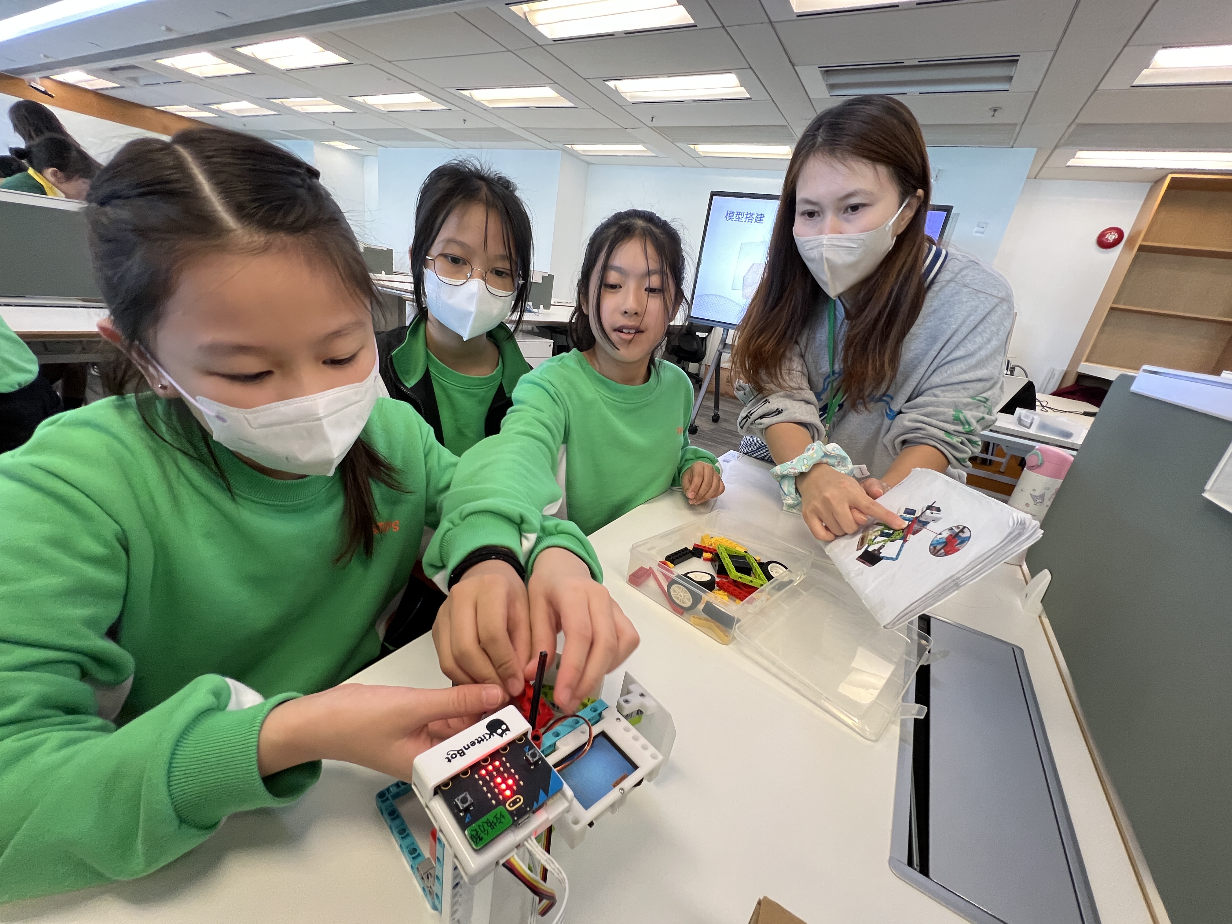 為了讓同學了解人工智能的最新發展,本學年安排小四及小五同學到香港科學園參觀AI人工智能科技公司。同學可以透過講座及展廳參觀,了解人工智能在不同領域的功用和價值,包括:生物醫療、金融科技、智慧城巿等。同學們更可以跟展品進行實時互動,例如:可以在智能駕駛模擬器中,了解人工智能如何監測駕駛者的精神狀態;又可以跟人工智能機器人下棋,加深對最新技術的了解;更可以透過工作坊了解人工智能機器人的學習方法。最後,學生動手拼砌和培訓人工智能機器人進行物件辨識,感受AI人工智能在現實生活中的應用。