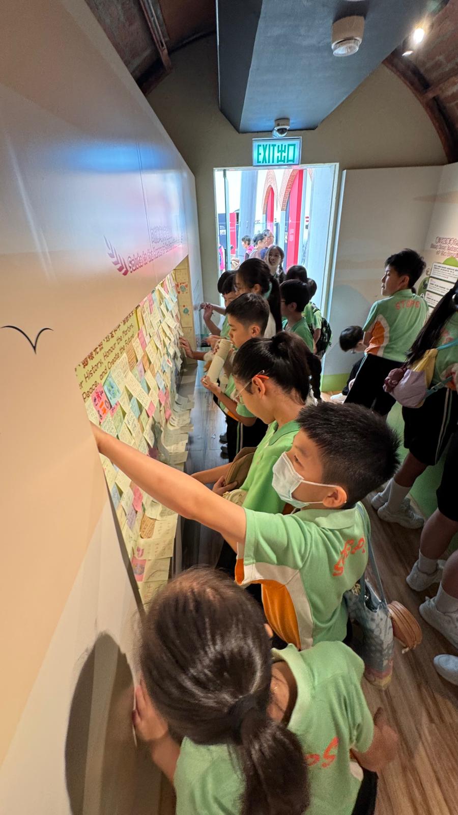 同學們在博物館「歷史迴響」留言區專注提筆,表達對先烈的敬意。 |