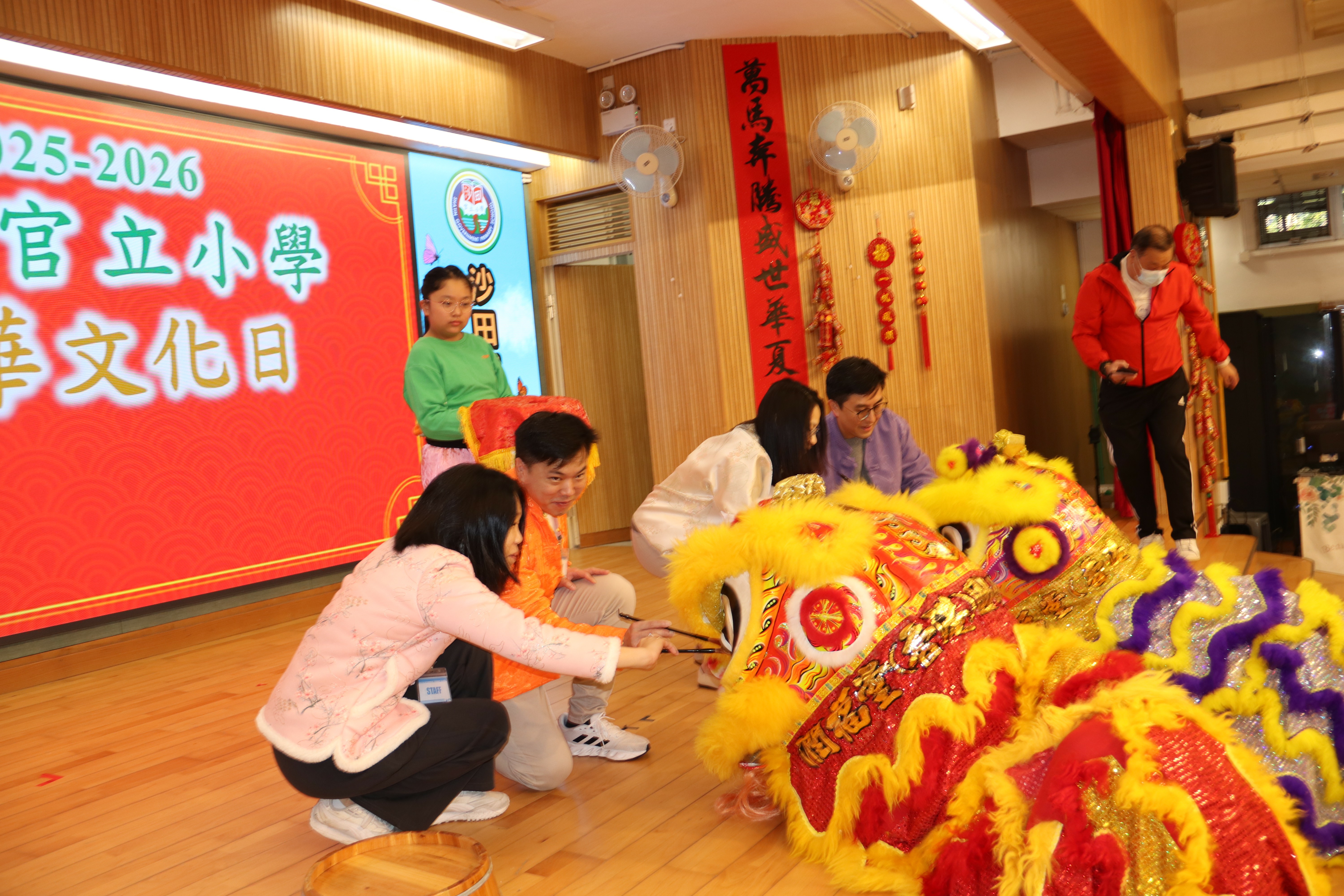 吳副校長、家教會正副主席以及校友會主席進行醒獅點睛儀式。
