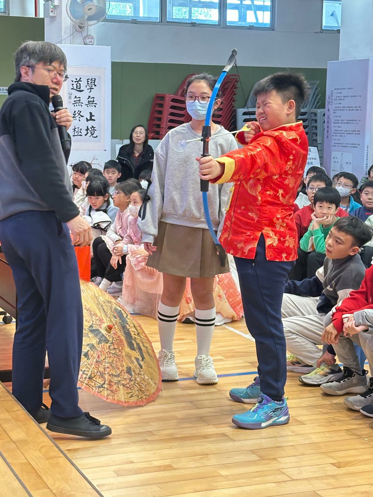 本校獅藝隊進行醒獅表演。