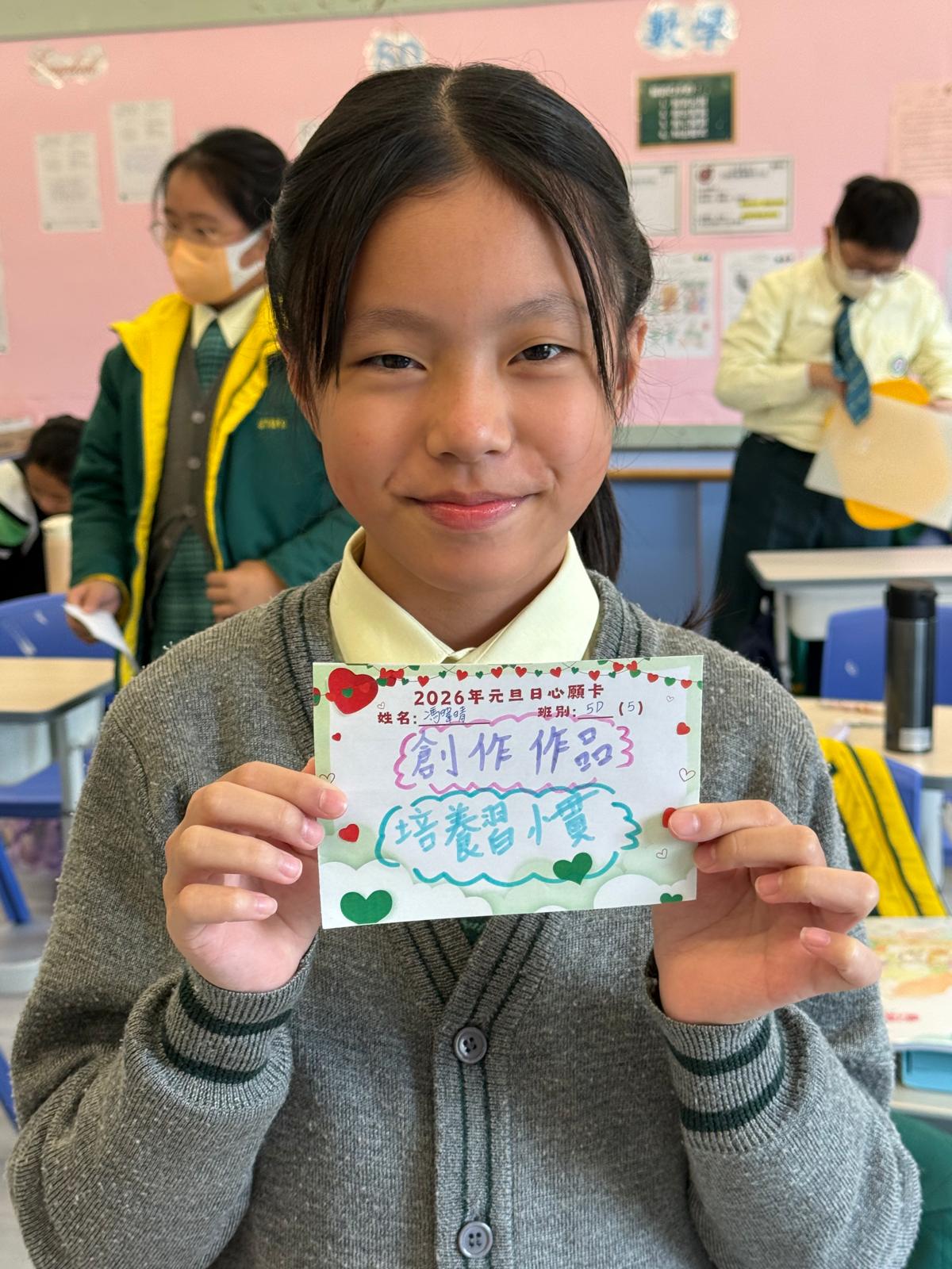 同學在心願卡上寫上今年的學習目標和理想。