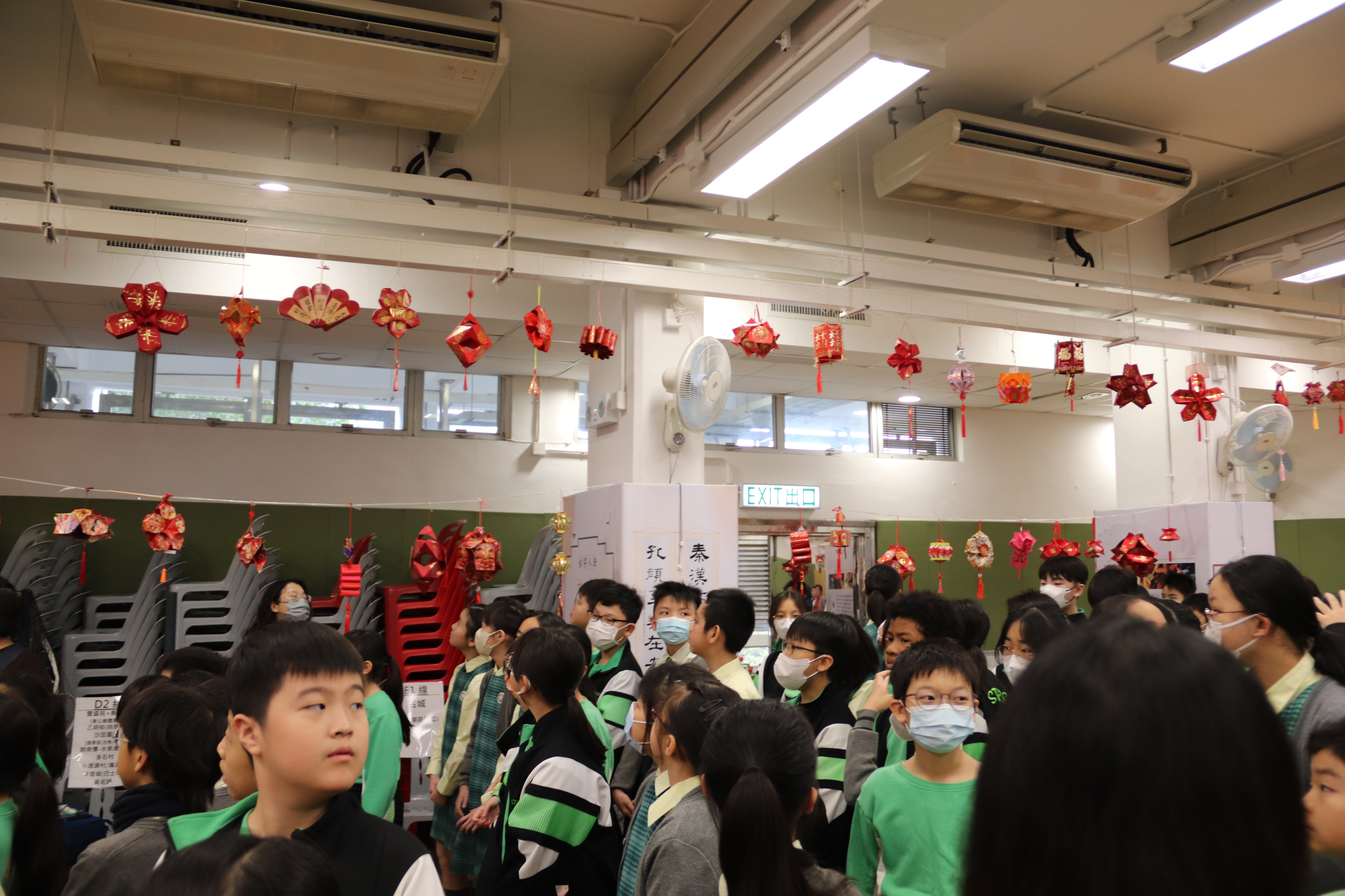 將全校學生的花燈佳作掛在禮堂