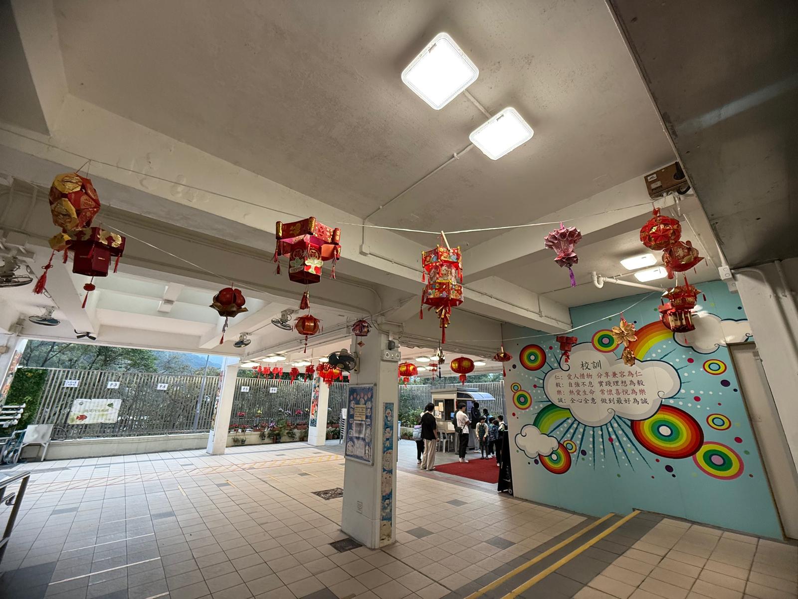 「環保利是封元宵節花燈創作」優秀作品掛在學校正門