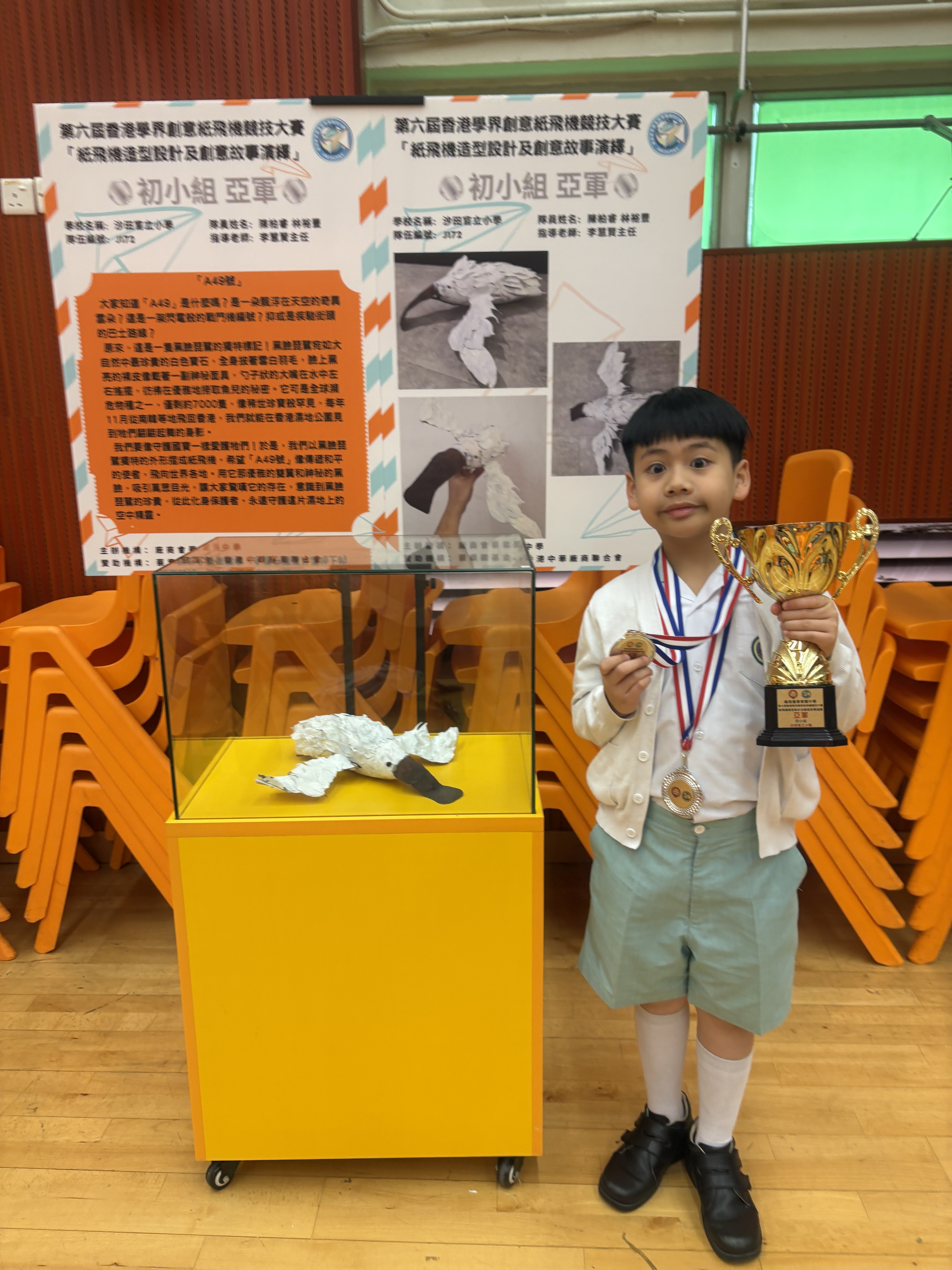 | 紙飛機造型設計及創意故事演繹大賽(高小組) | 冠軍 | 4A 李思諾、4A 何詩蔚 |