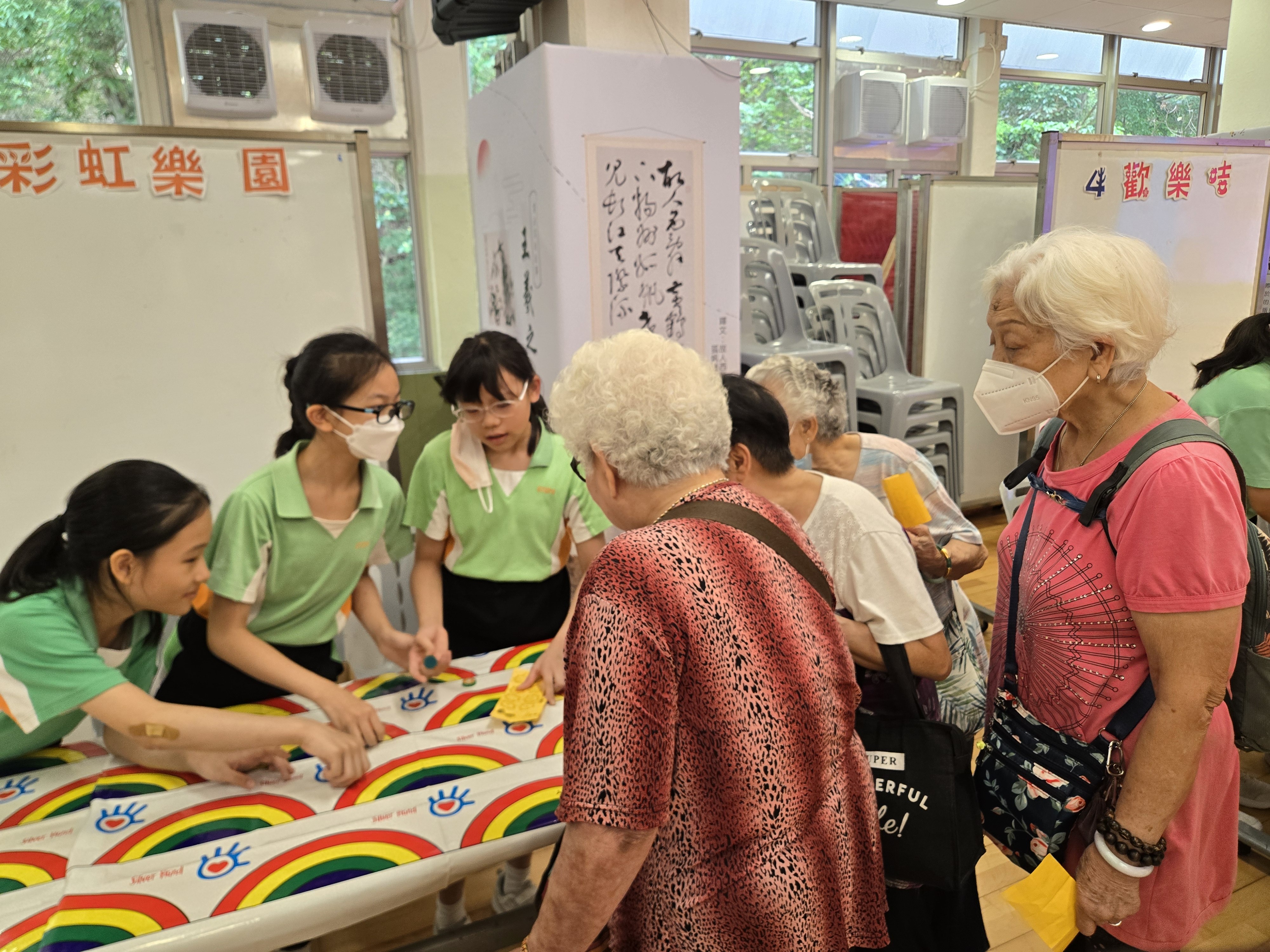 長者們在不同攤位玩得不亦樂乎。