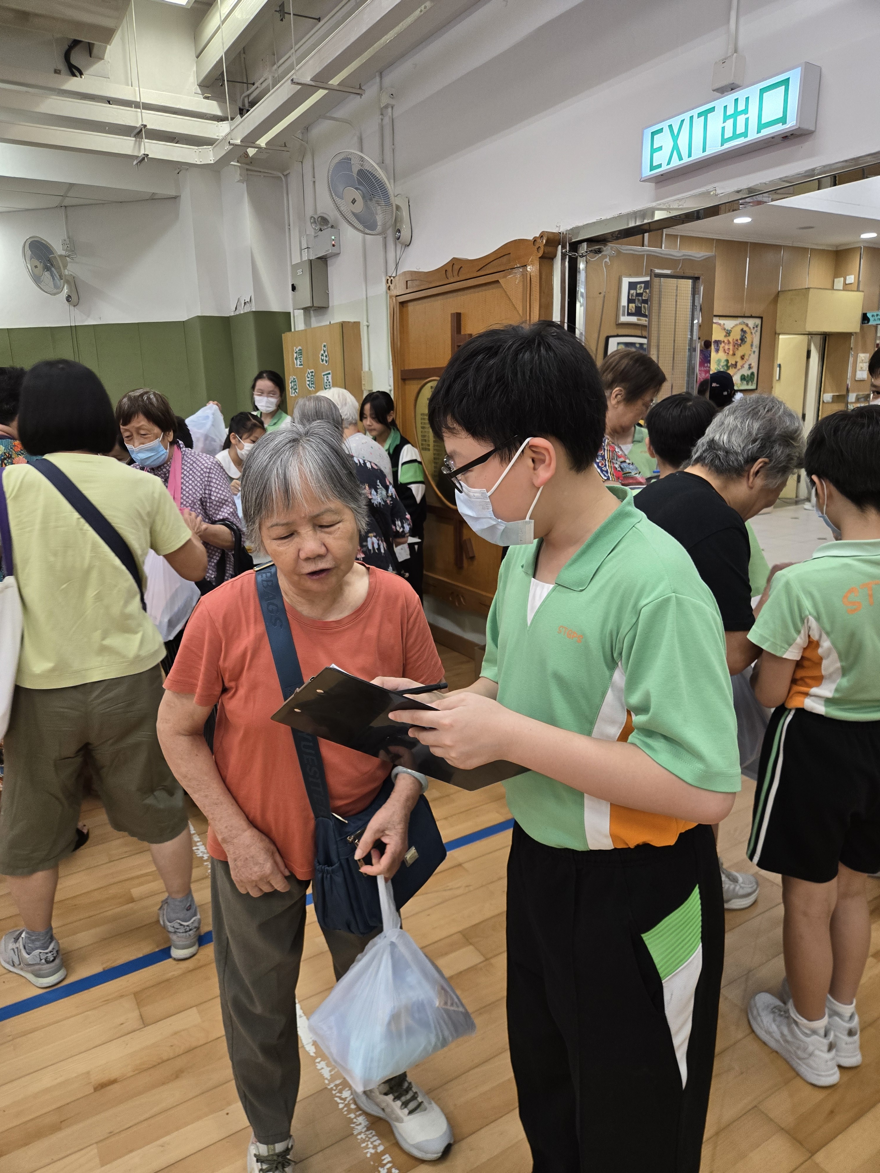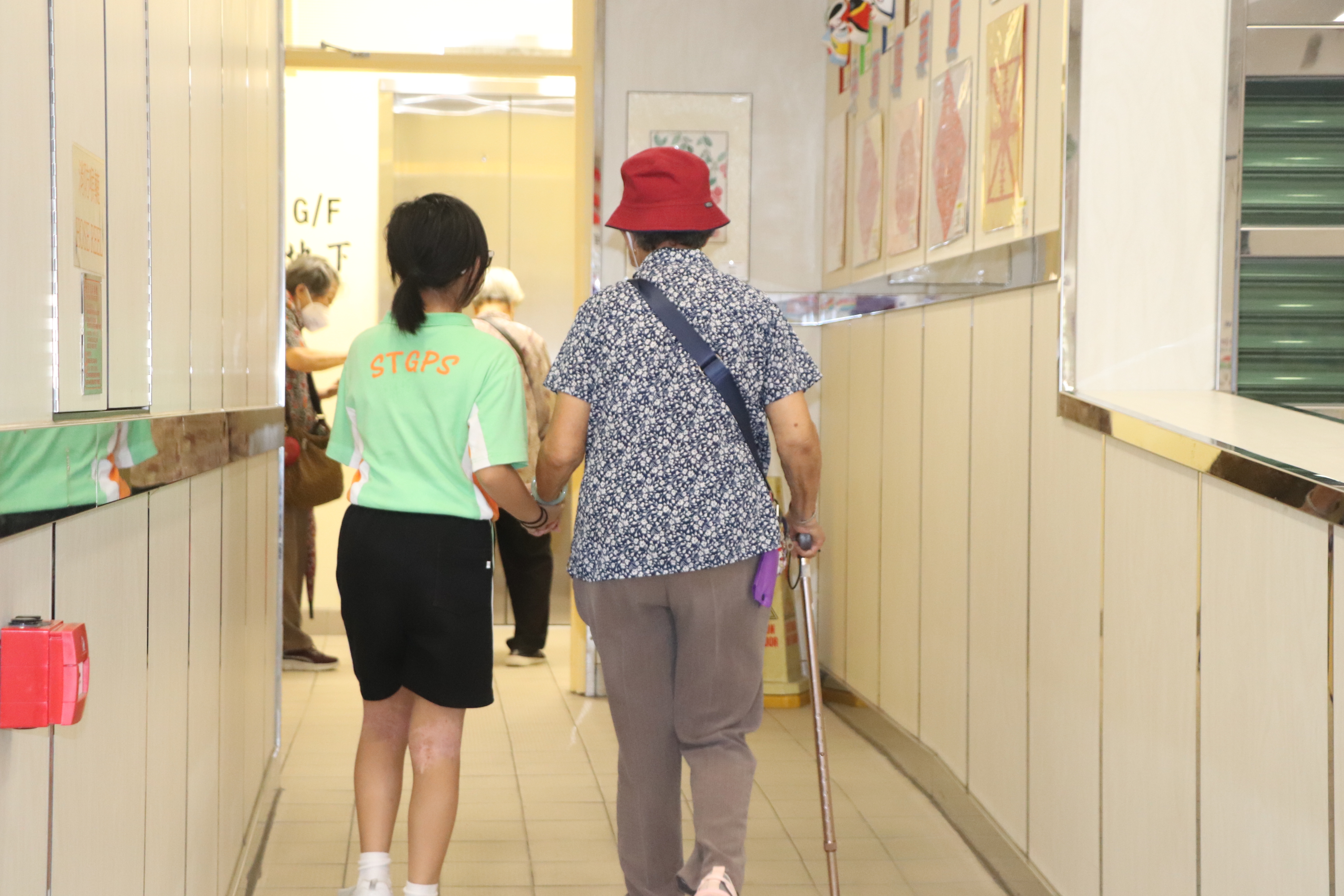 同學陪伴長者前往禮堂參加活動。