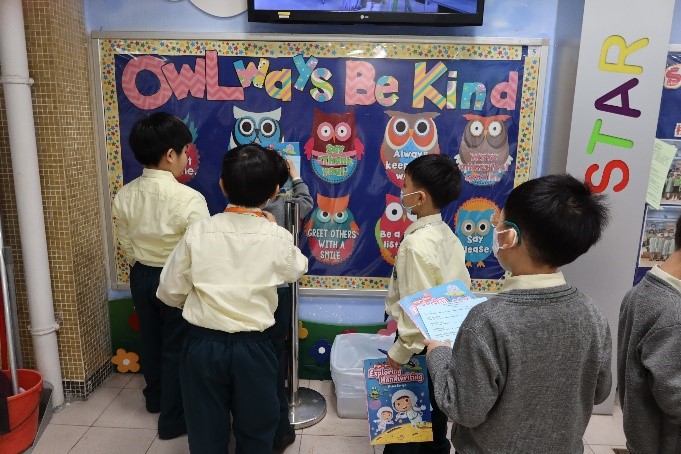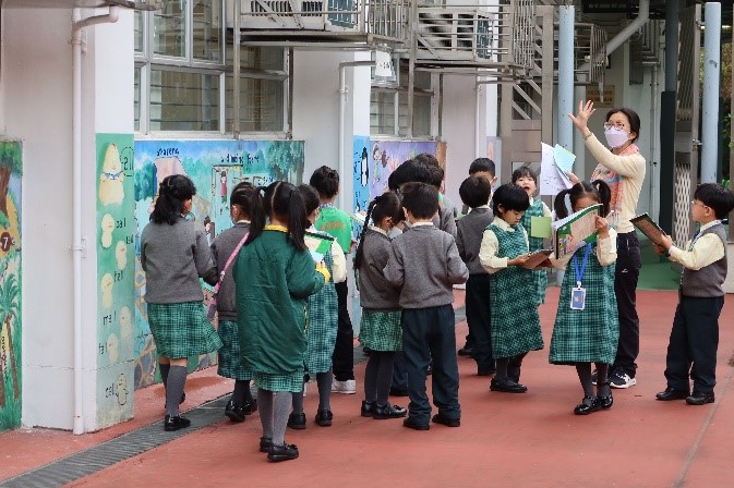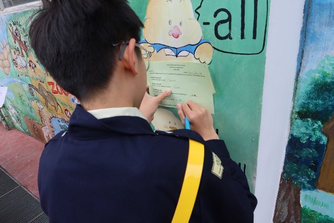 English teachers guided the students to the ground floor, where they were tasked with completing questions during their English lesson. The students tried their best to find the answers at various checkpoints, from which they got to know different areas of our campus better. As a reward, the students were given stamps for actively participating or correctly answering all the questions.