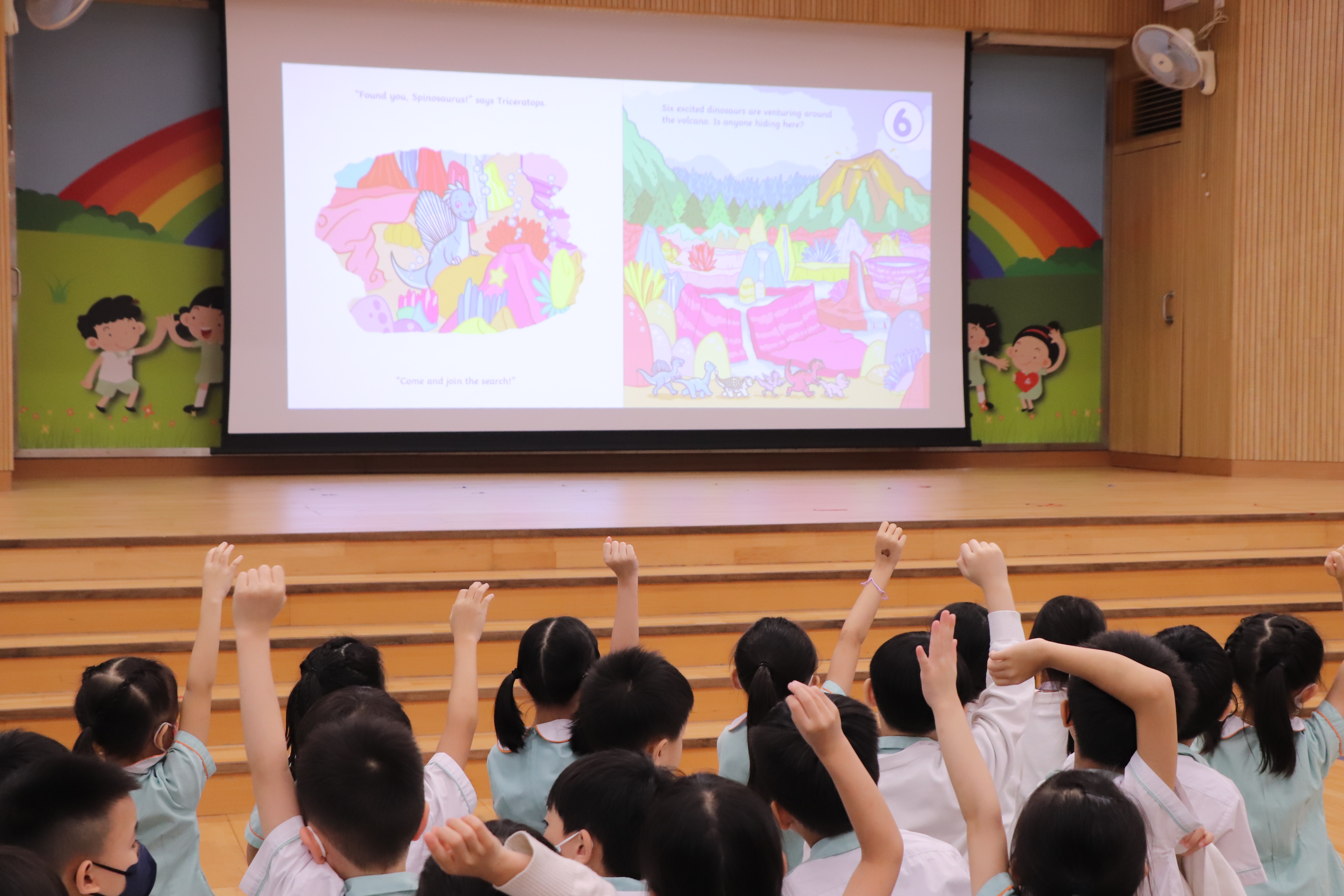 While P1 and P2 engaged with the captivating story, they were not just passive listeners, but very active participants. They listened attentively and demonstrated their sharp cognitive skills by accurately counting the number of dinosaurs and identifying the correct dinosaur in each picture. Most of the students were enthusiastic and involved in engaging activities. Their keen focus was truly impressive, and it facilitated their learning experience.