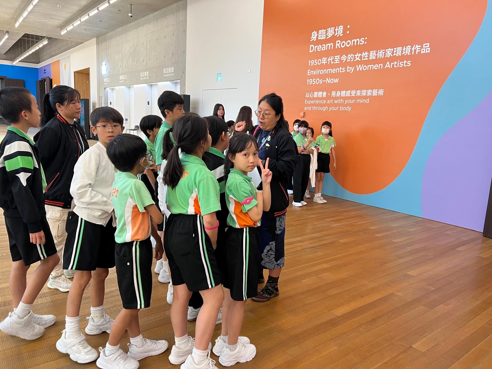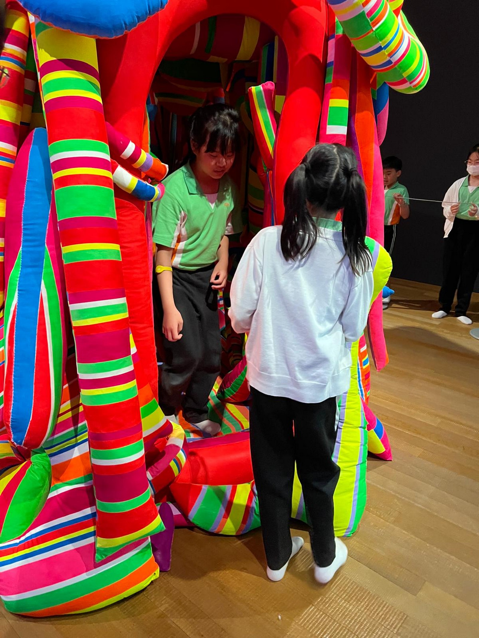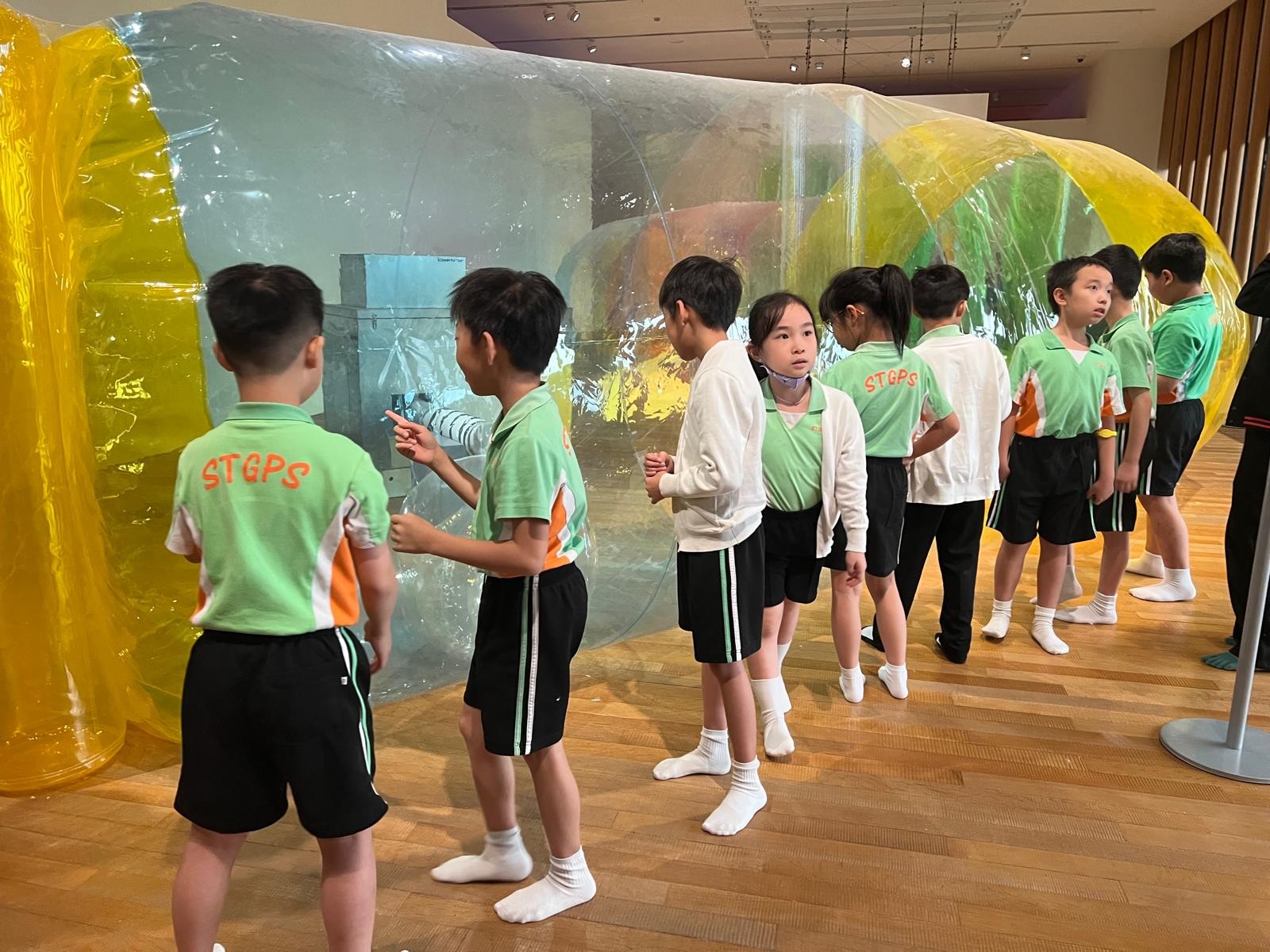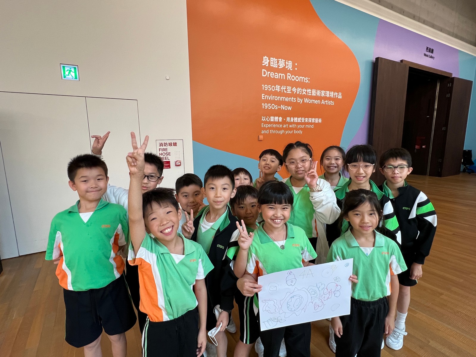 為了提升學生在視覺藝術科的學習體驗,加深對藝術的認識及感受,學校安排四年級學生參觀M+博物館「身臨夢境:1950年代至今的女性藝術家環境作品」展覽,讓學生在展館進行沉浸式體驗。學生在展覽中扮演積極的角色,與感覺、材料、聲音和物件互動,感受它們帶來的刺激,不知不覺間已成為作品的一部份。
