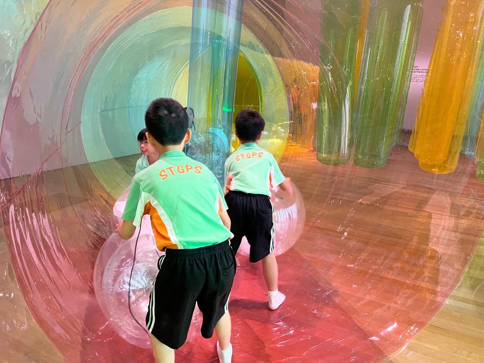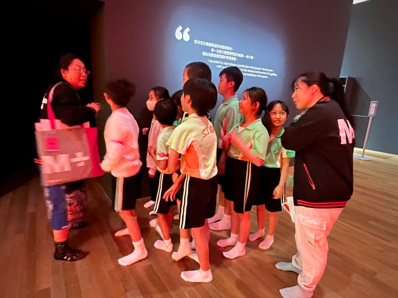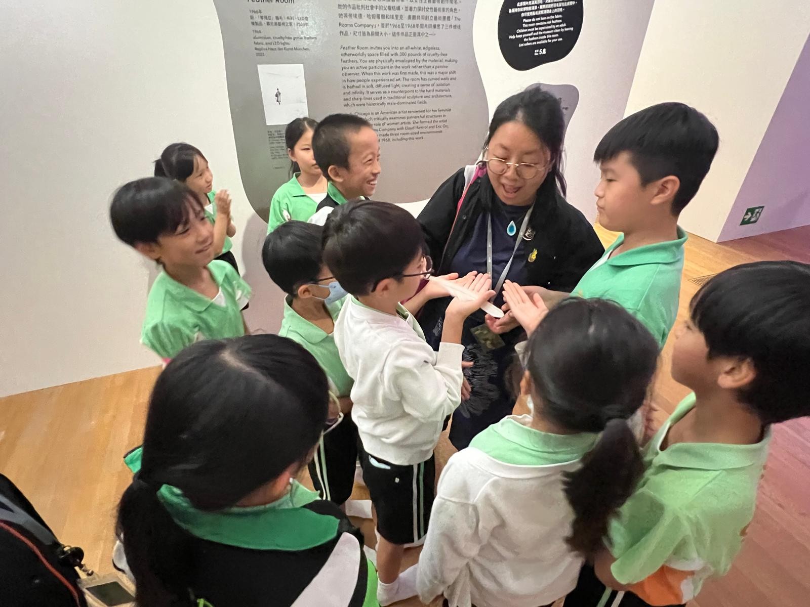 為了提升學生在視覺藝術科的學習體驗,加深對藝術的認識及感受,學校安排四年級學生參觀M+博物館「身臨夢境:1950年代至今的女性藝術家環境作品」展覽,讓學生在展館進行沉浸式體驗。學生在展覽中扮演積極的角色,與感覺、材料、聲音和物件互動,感受它們帶來的刺激,不知不覺間已成為作品的一部份。