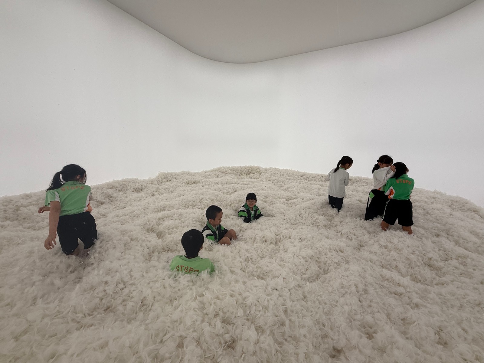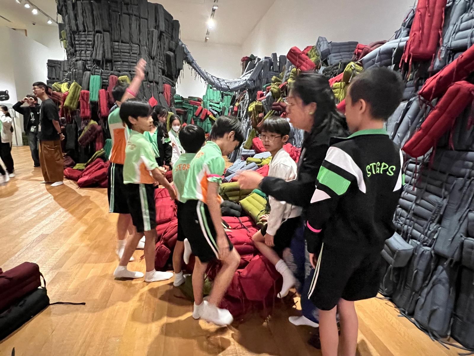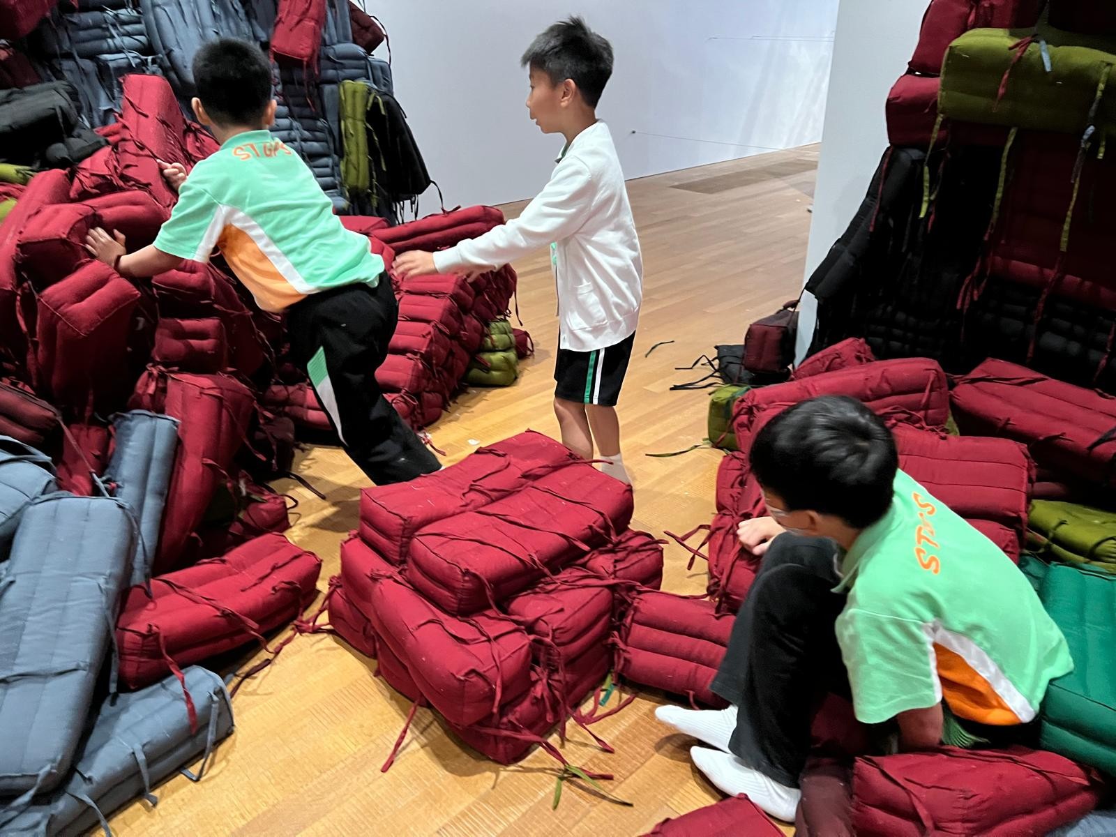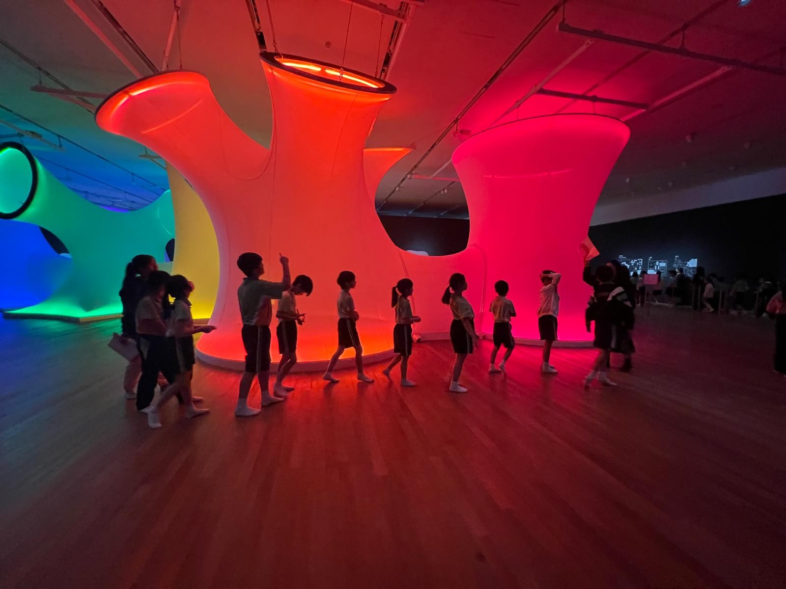 為了提升學生在視覺藝術科的學習體驗,加深對藝術的認識及感受,學校安排四年級學生參觀M+博物館「身臨夢境:1950年代至今的女性藝術家環境作品」展覽,讓學生在展館進行沉浸式體驗。學生在展覽中扮演積極的角色,與感覺、材料、聲音和物件互動,感受它們帶來的刺激,不知不覺間已成為作品的一部份。