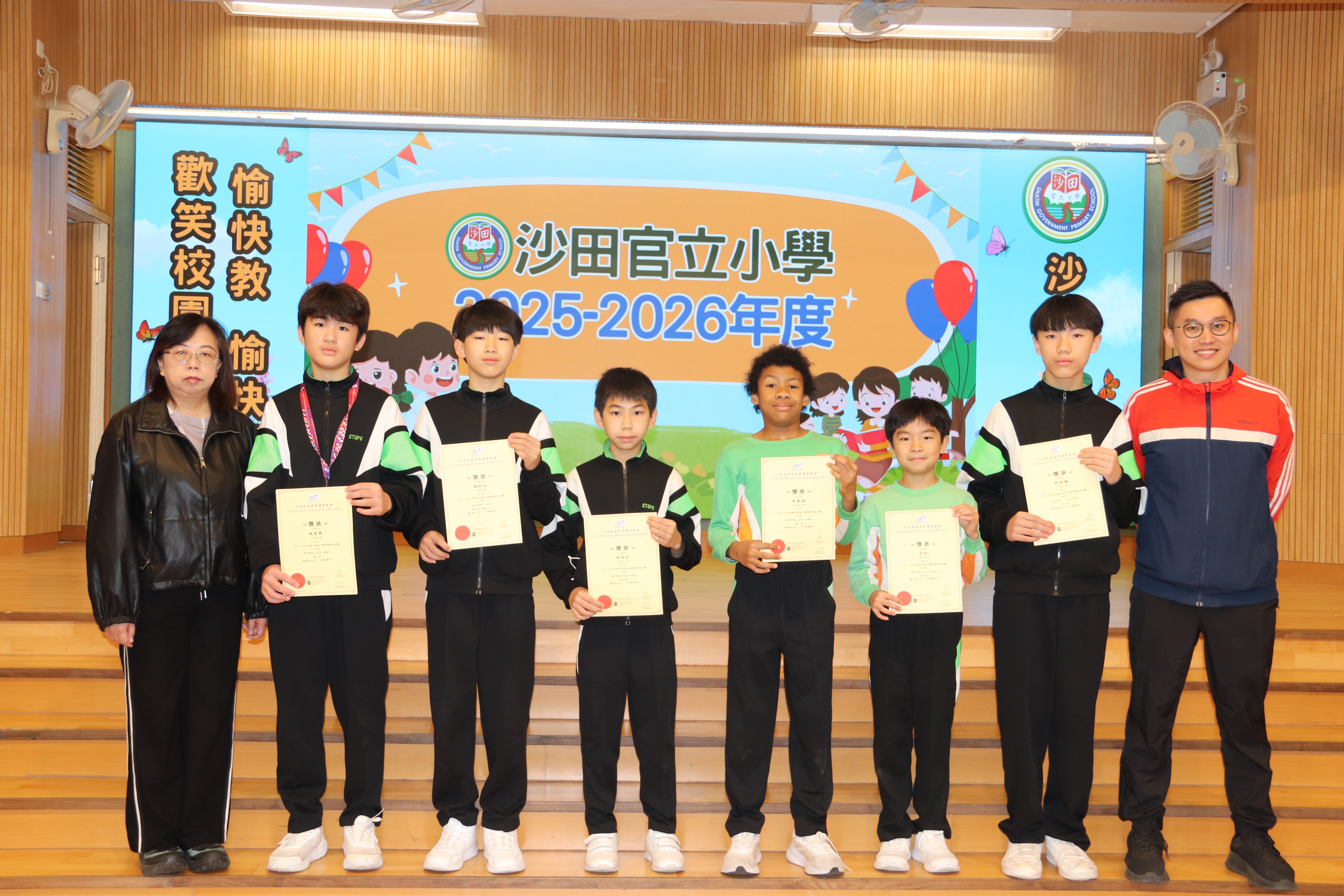 5D 黎庭熙 、6B高朗、6B麥彥禧、6C劉樂謙、6D陳睿豐及6D葉軒成,男甲4x100米接力優異獎