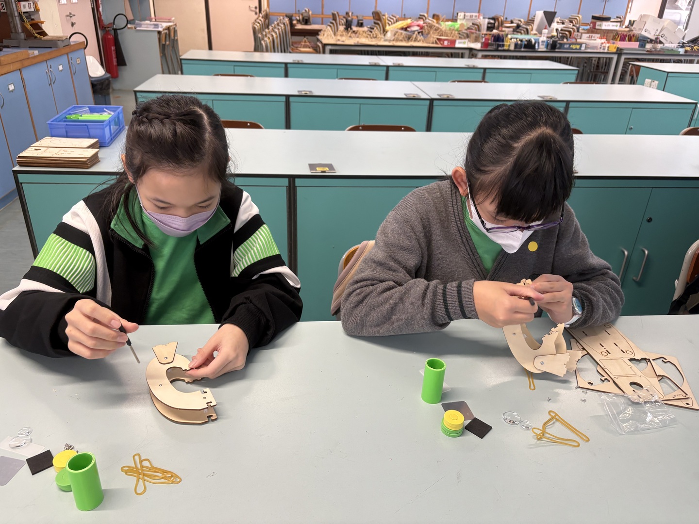 | 同學們小心翼翼地用螺絲批把每個部件連接起來。 | |