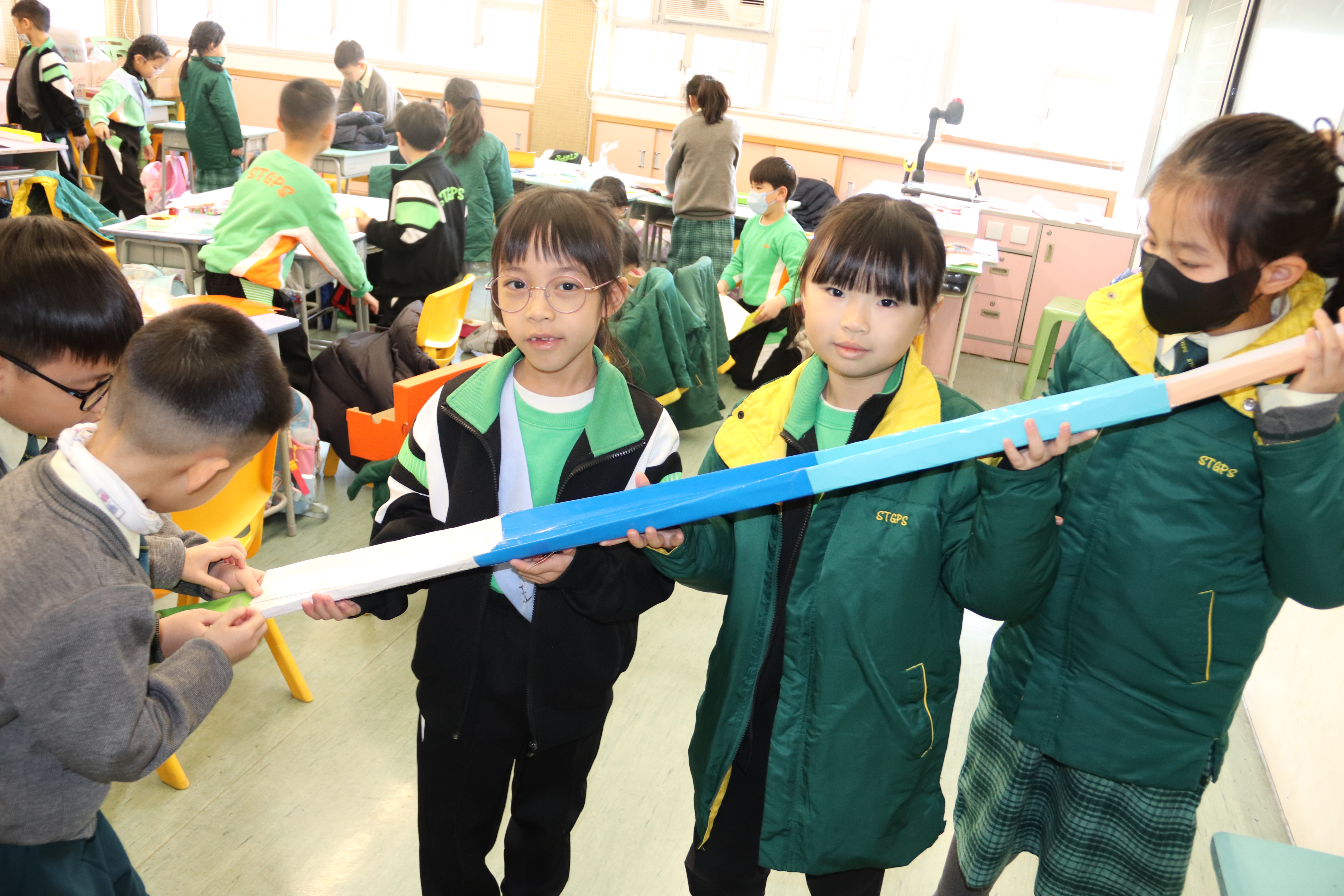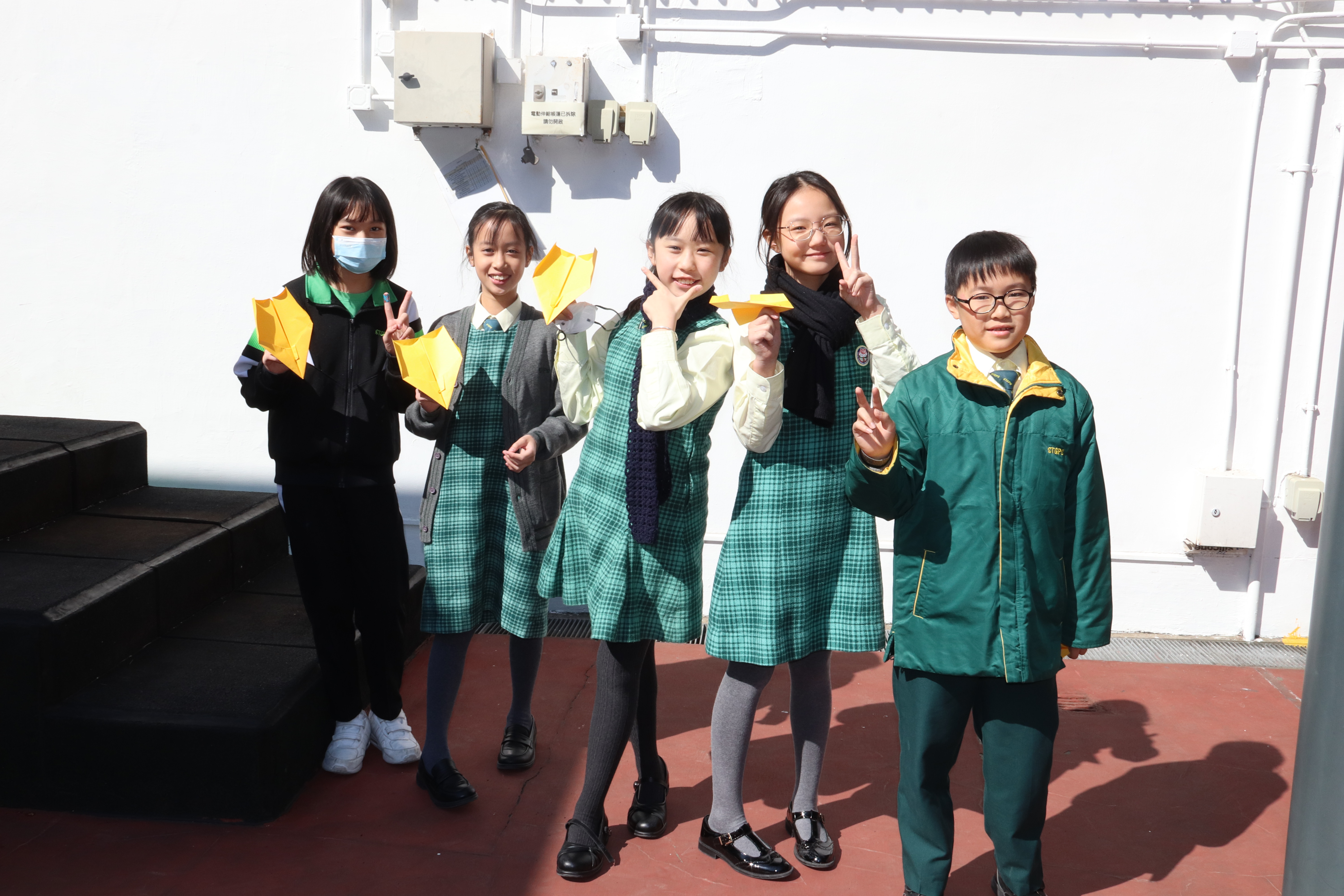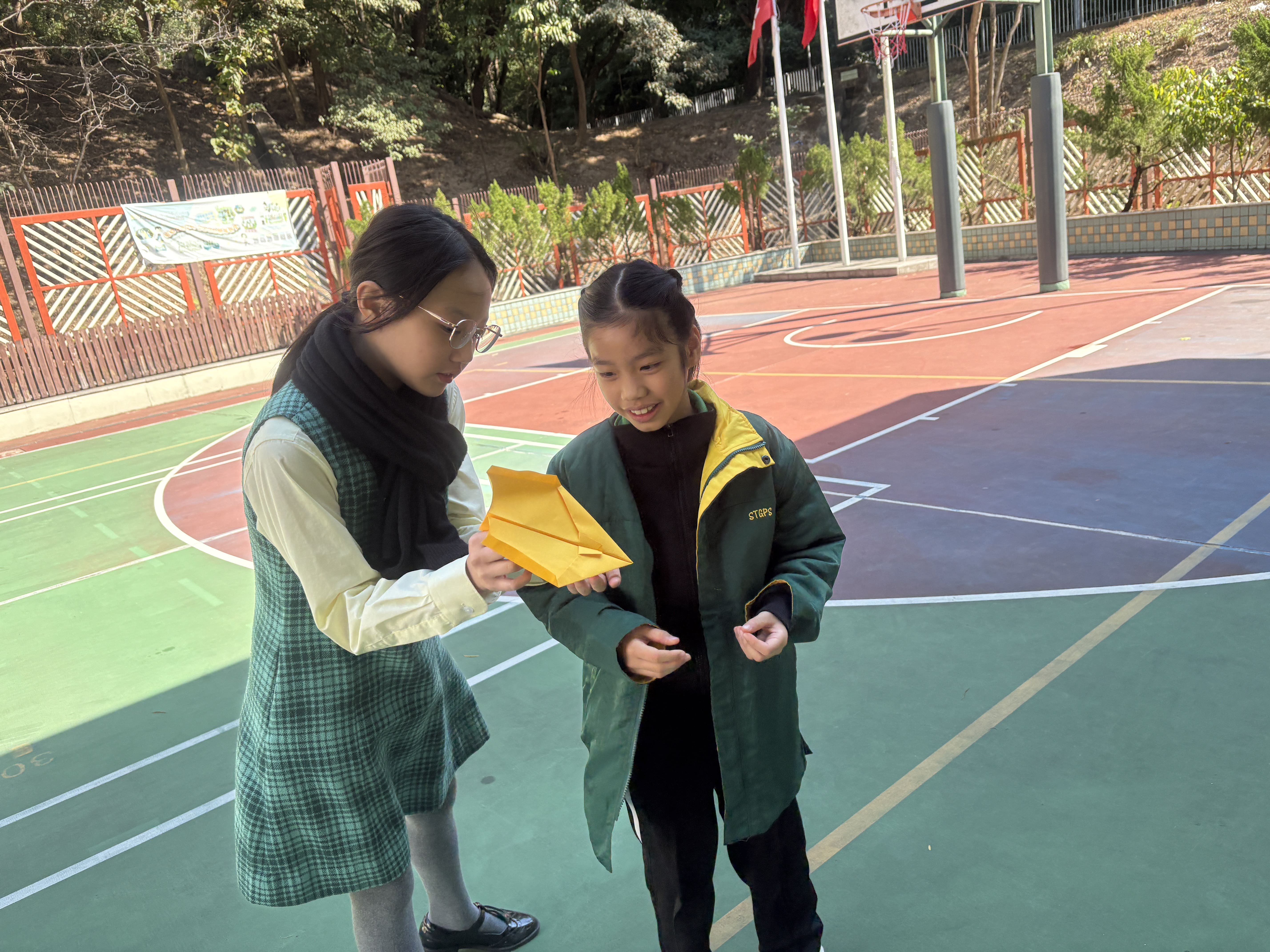 | 五年級的師兄師姐在級際比賽中向三年級的師弟師妹展示操作回力飛行紙飛機的技巧,同時也讓他們親身體驗回力的原理和STEAM活動的樂趣。 | ||