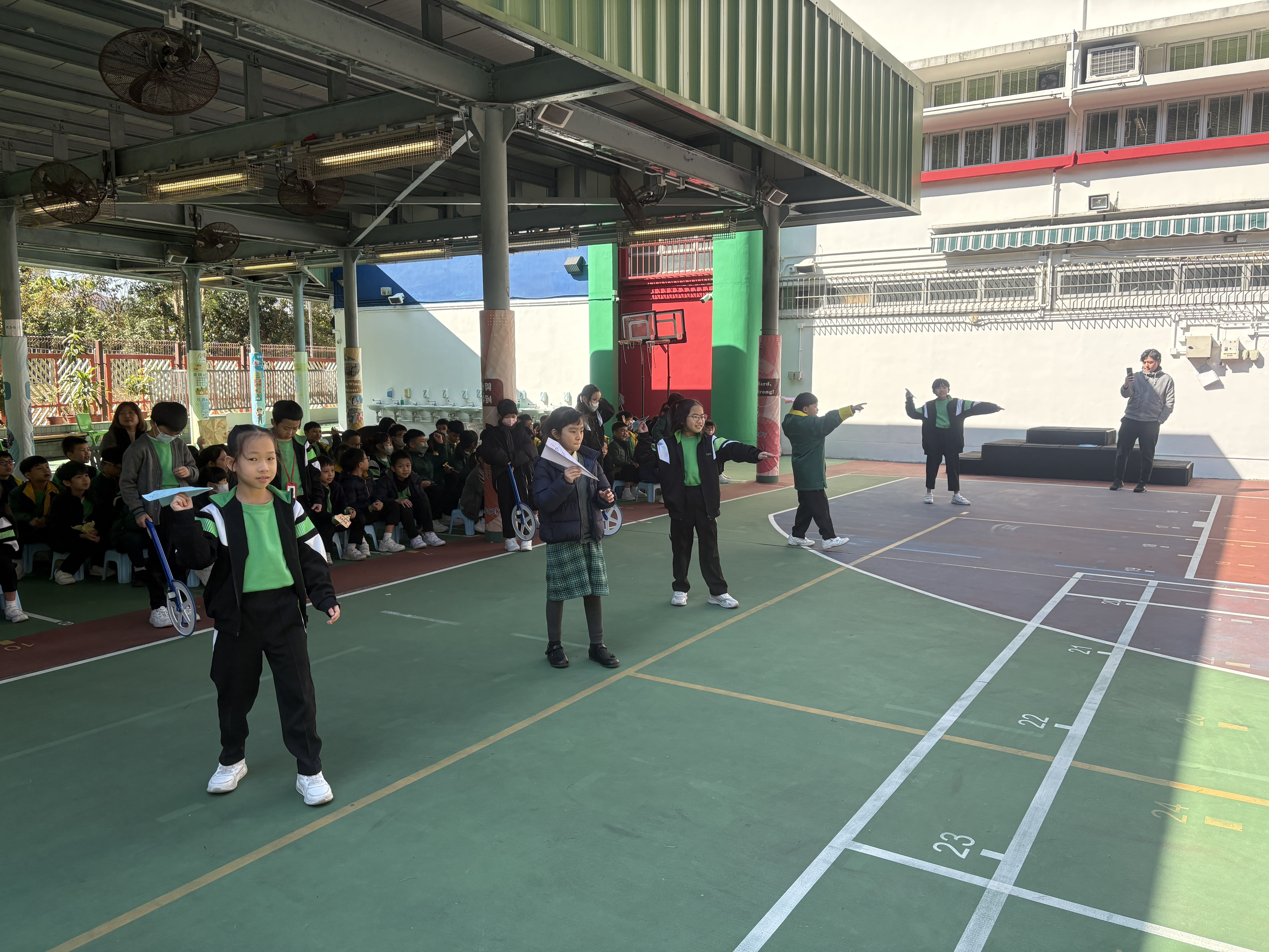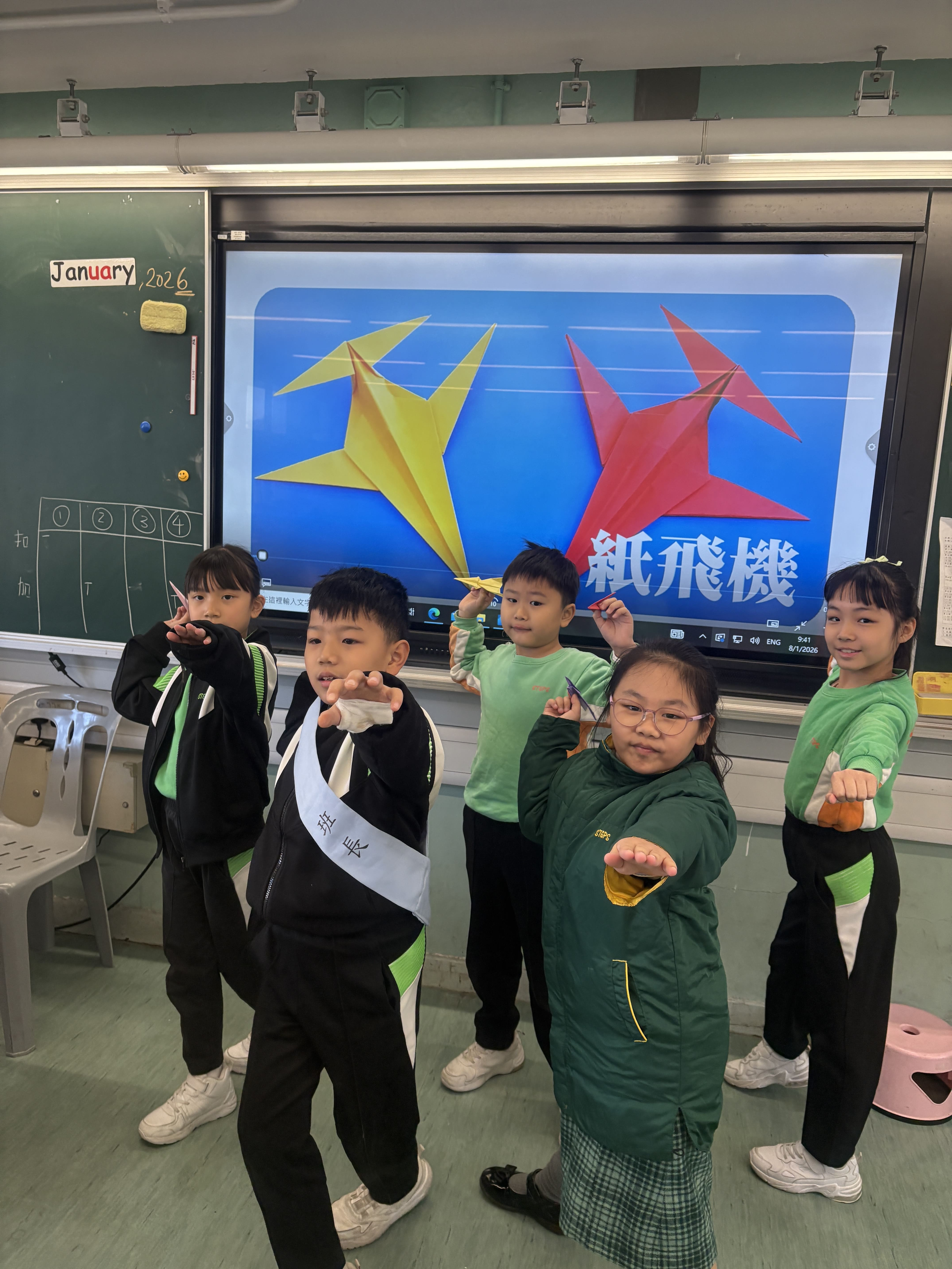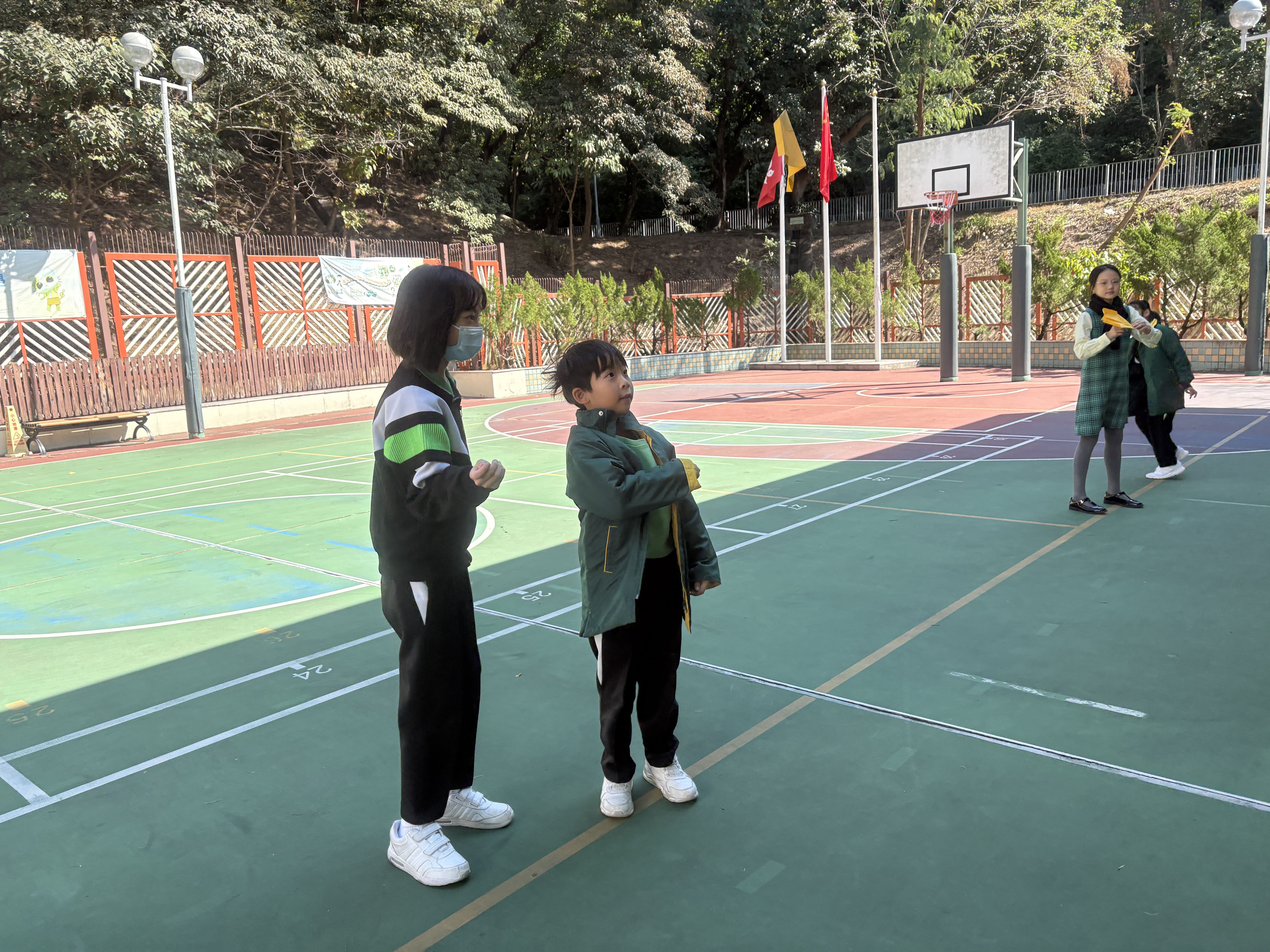 | 五年級的師兄師姐在級際比賽中向三年級的師弟師妹展示操作回力飛行紙飛機的技巧,同時也讓他們親身體驗回力的原理和STEAM活動的樂趣。 | ||