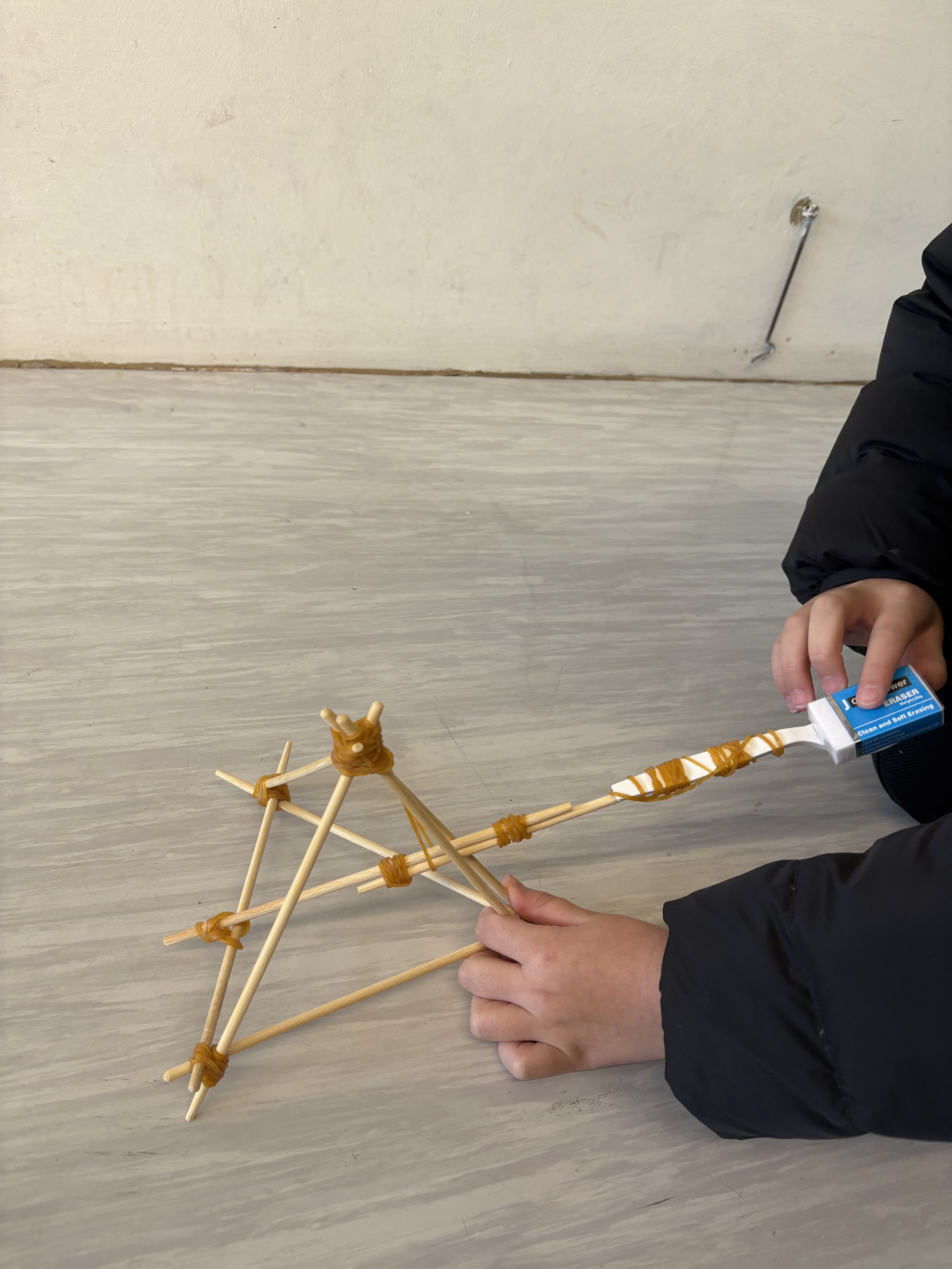 | 同學發揮團隊精神,羣策羣力地製作羅馬炮架。 | ||