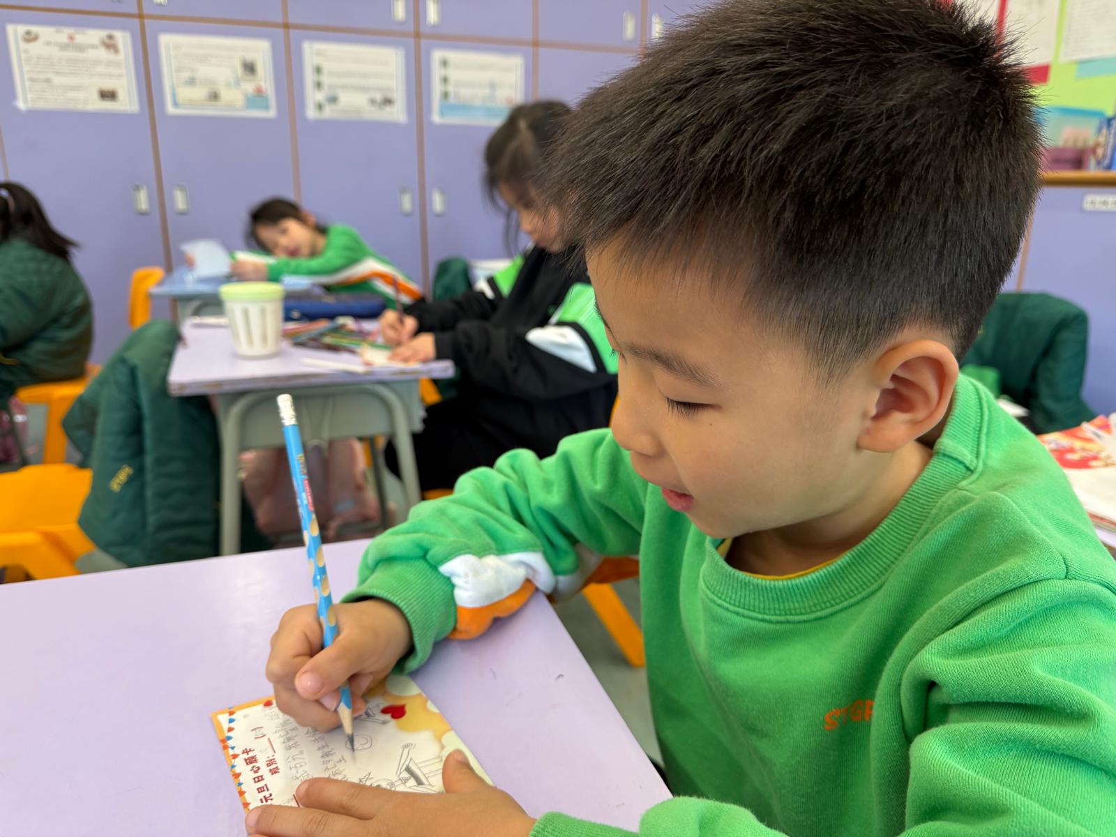 同學在心願卡上寫上今年的學習目標和理想。