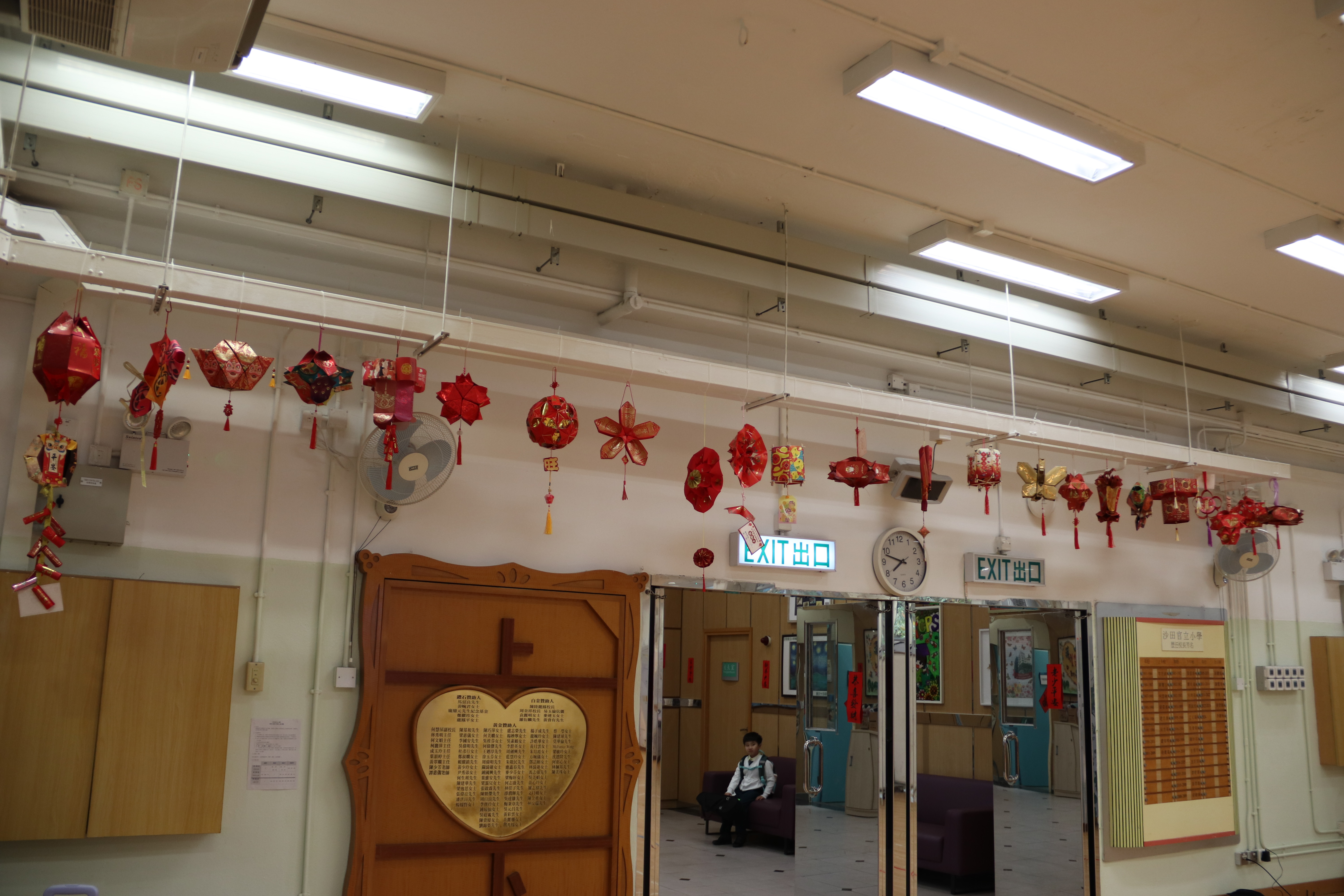 將全校學生的花燈佳作掛在禮堂