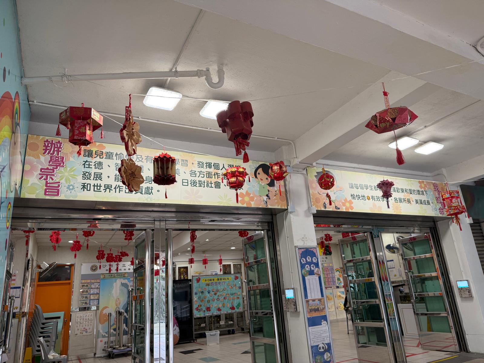「環保利是封元宵節花燈創作」優秀作品掛在學校正門