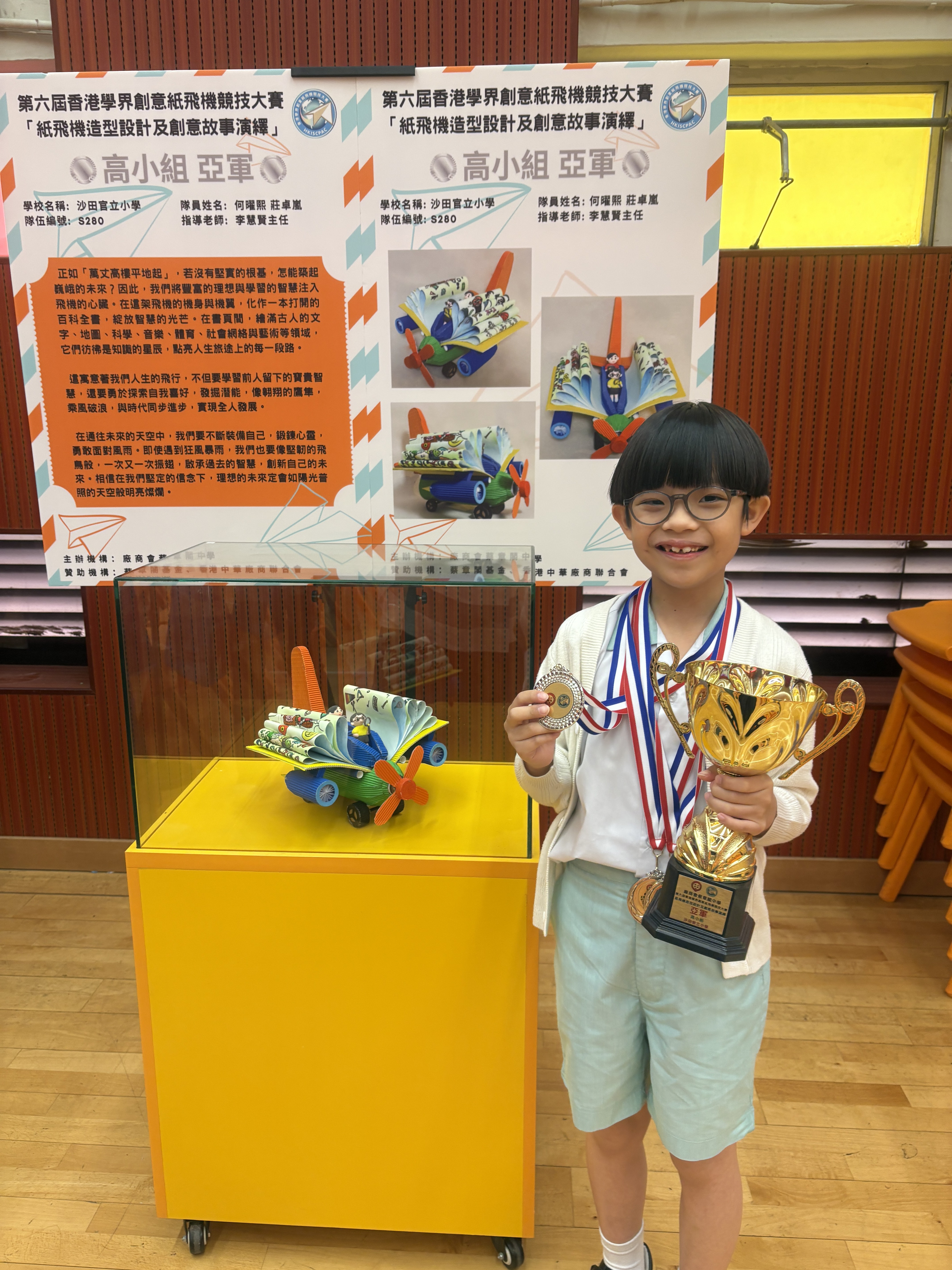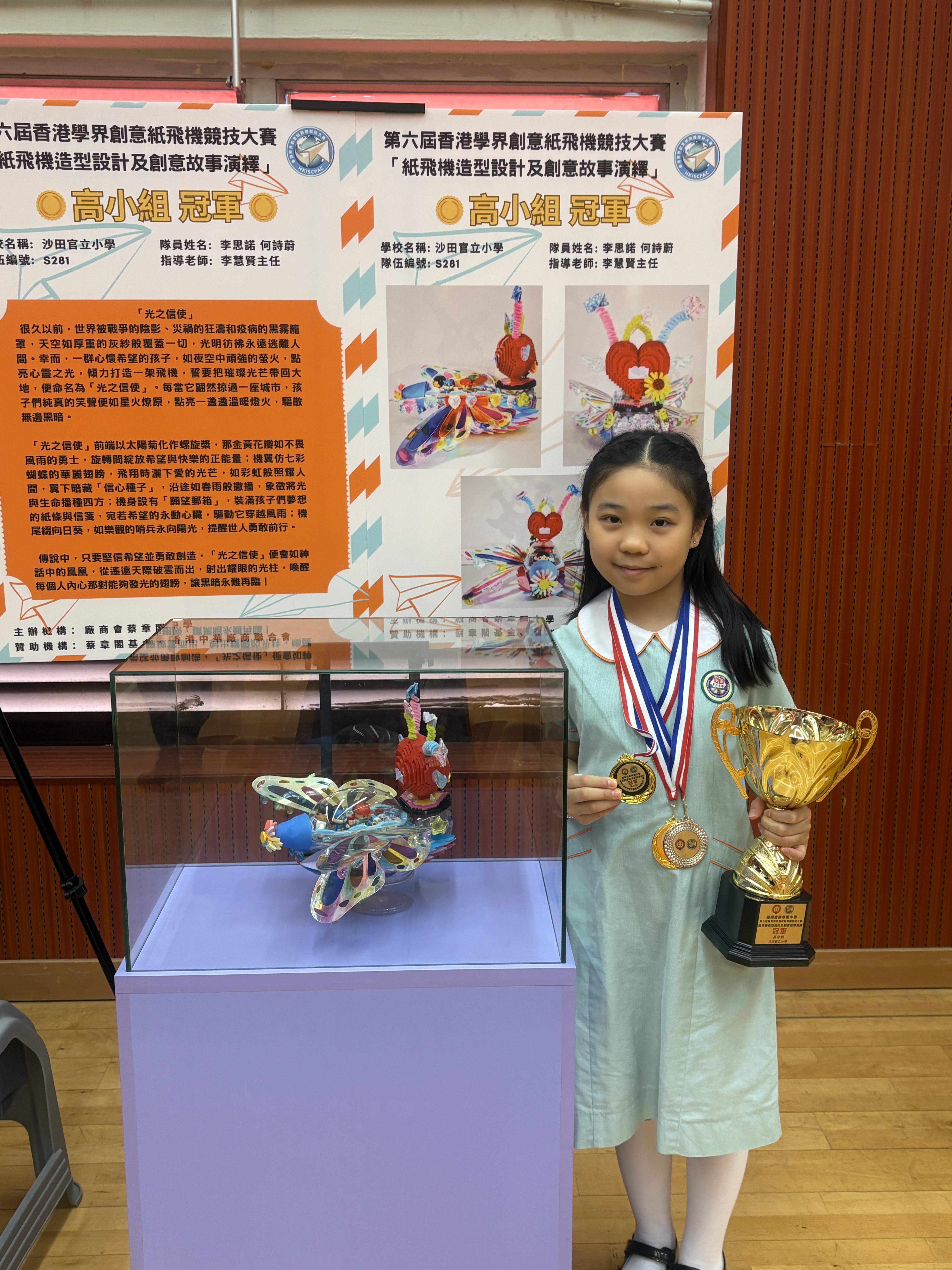 | 紙飛機造型設計及創意故事演繹大賽(高小組) | 冠軍 | 4A 李思諾、4A 何詩蔚 |