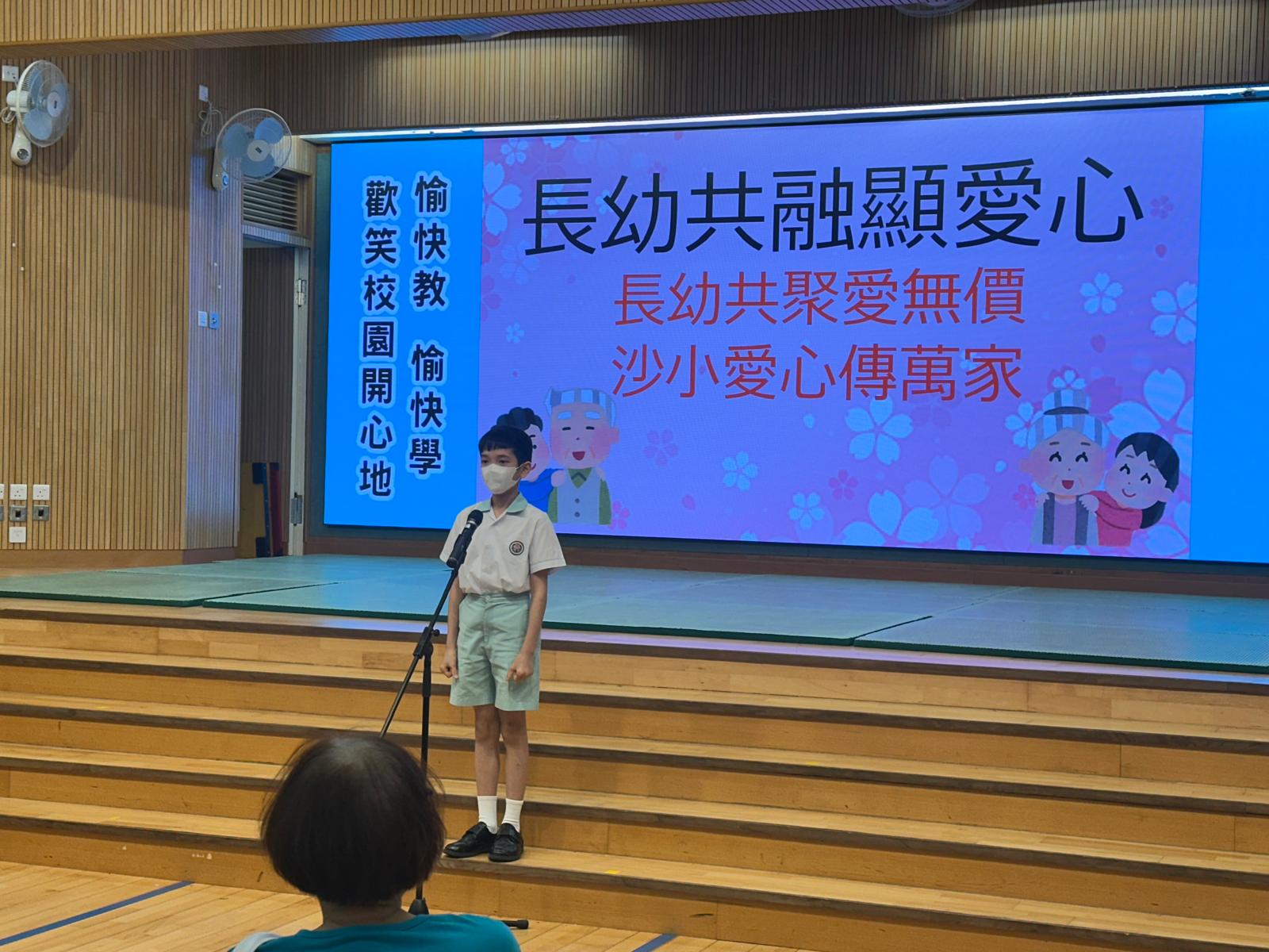 常識科組於6月18日邀請基督教新生會新田圍堂的長者們到校歡渡午後時光。我們以「長幼共聚愛無價,沙小愛心傳萬家」作為今年活動口號,希望能培養學生尊老敬長的精神,感受服務社會的喜悅。 當日活動精彩豐富,五年級各班同學上台為長者們展示各項才能,同學更在表演結束後主持攤位遊戲,讓長者們的笑聲傳遍校園。