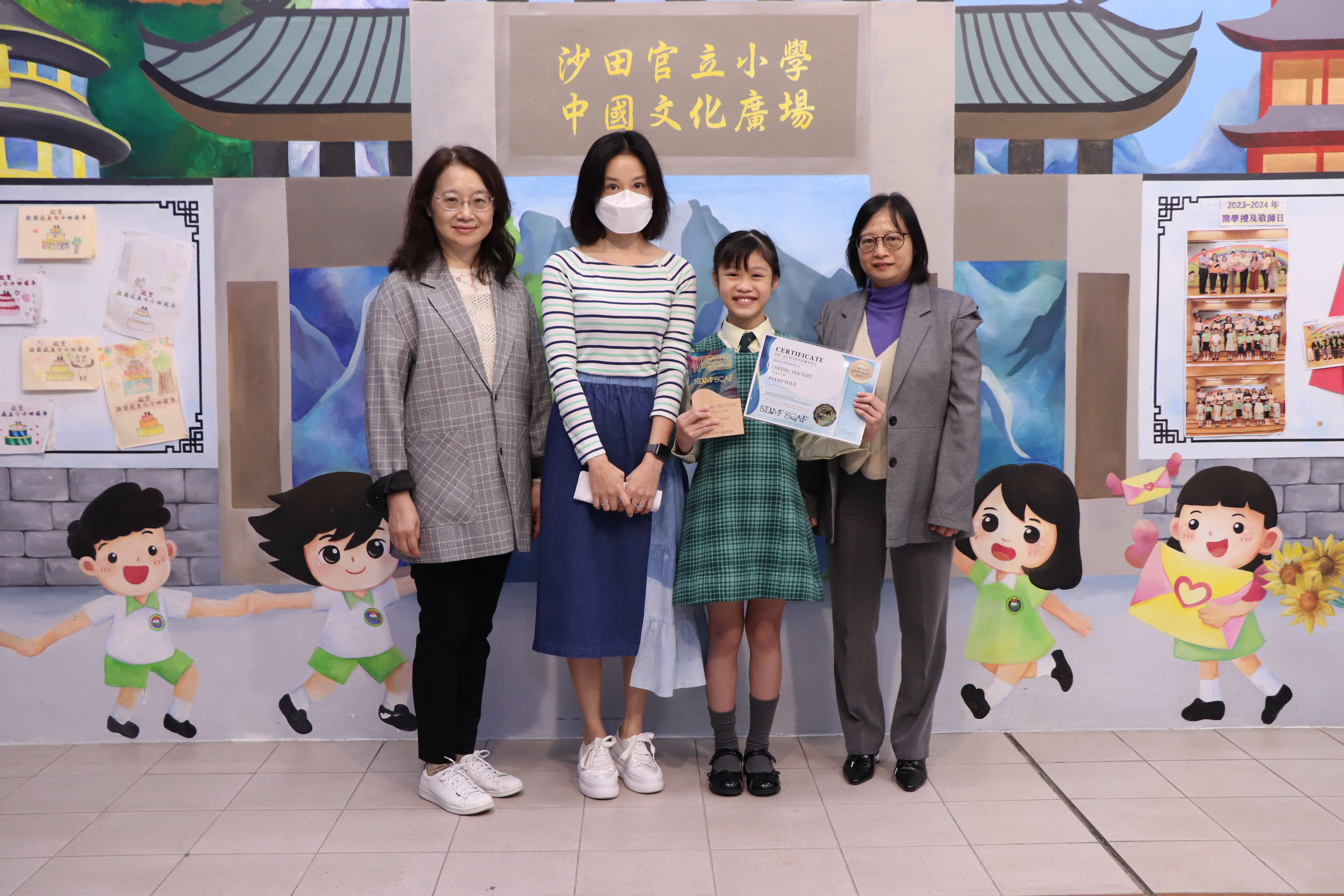 5A張欣悅同學與杜校長、科顧問及科主任拍照留念。