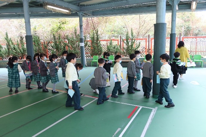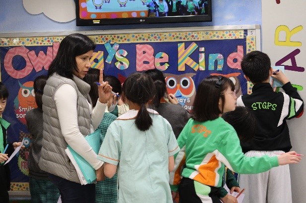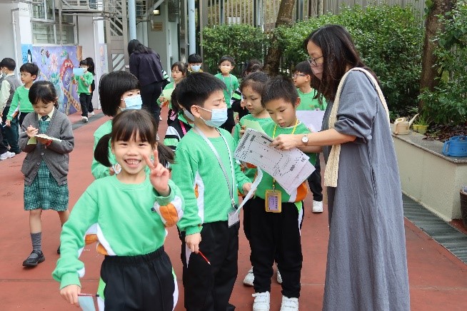 English teachers guided the students to the ground floor, where they were tasked with completing questions during their English lesson. The students tried their best to find the answers at various checkpoints, from which they got to know different areas of our campus better. As a reward, the students were given stamps for actively participating or correctly answering all the questions.