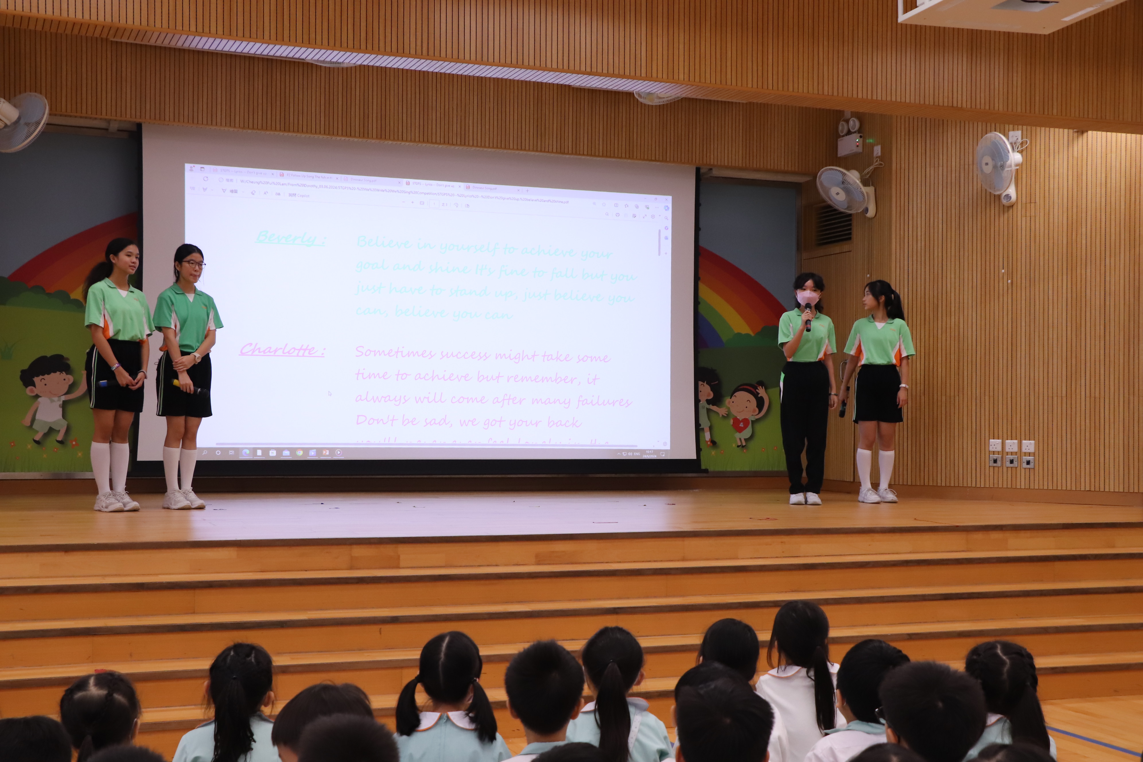 Furthermore, we had the privilege of inviting four talented P.6 students to perform a heartwarming rendition of the song 'Believe in Yourself' for the P.1-3 students. The purpose of this musical performance was to inspire and motivate the younger students to stay positive and have faith in their abilities. The uplifting lyrics and soulful melody served as a reminder for everyone present to embrace self-belief and strive for their dreams.