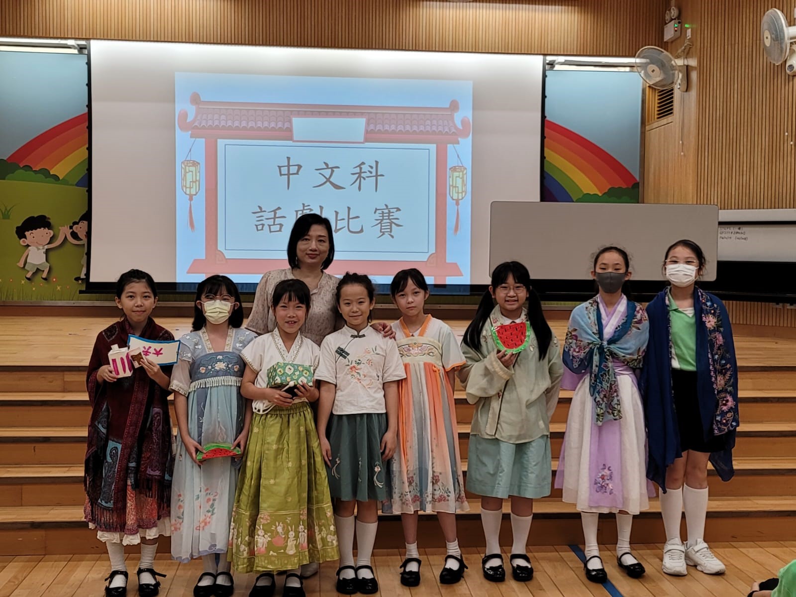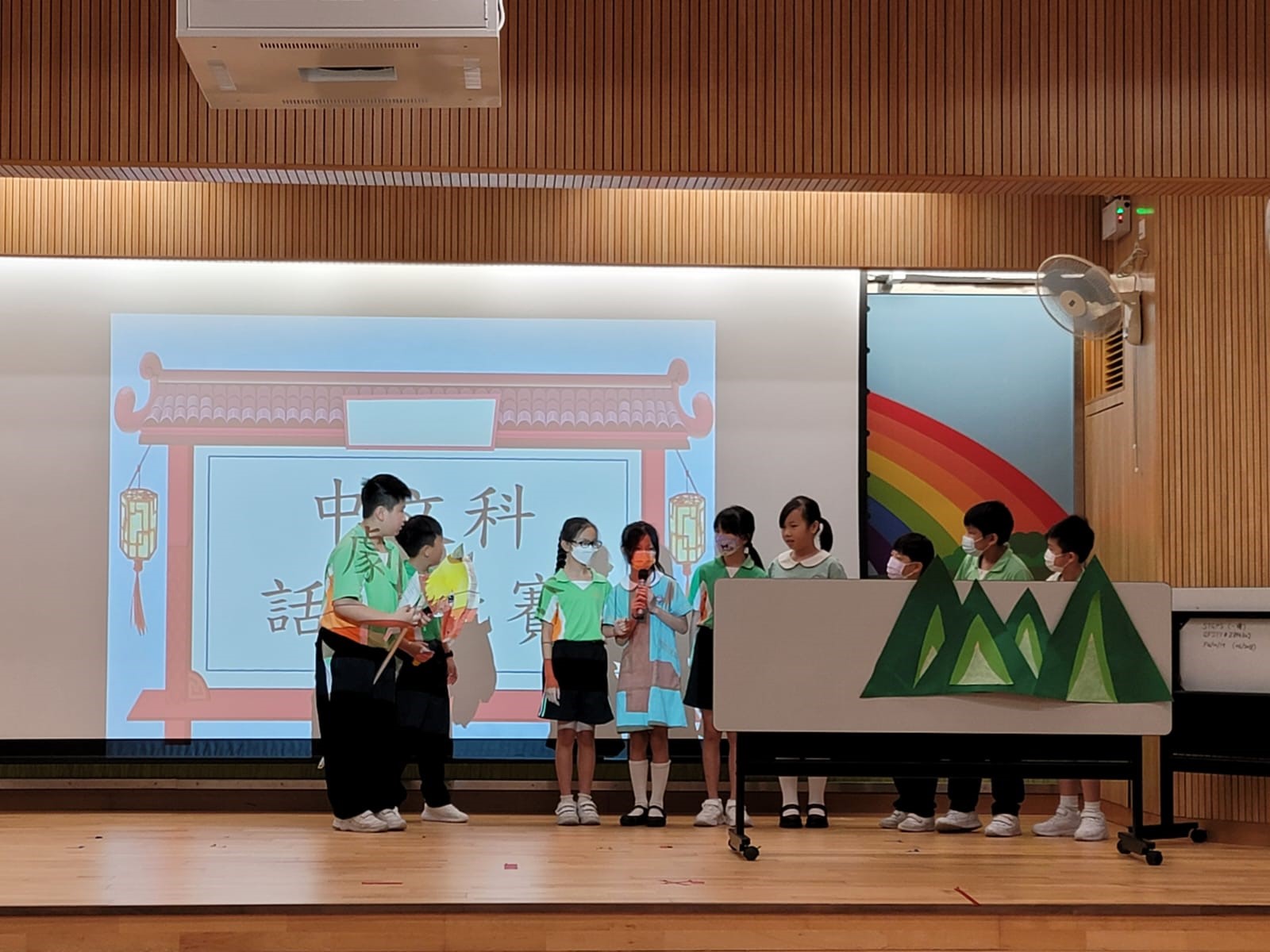 中文科於7月3日(星期三)舉行了「一至三年級講故事比賽」及「四至六年級話劇比賽」,鼓勵學生把正向價值元素及中華傳統文化糅合故事進行改編及演繹,發揮創意。各班參賽者悉心準備,繪製道具,思慮周詳的表演令觀衆們猶如置身劇中。