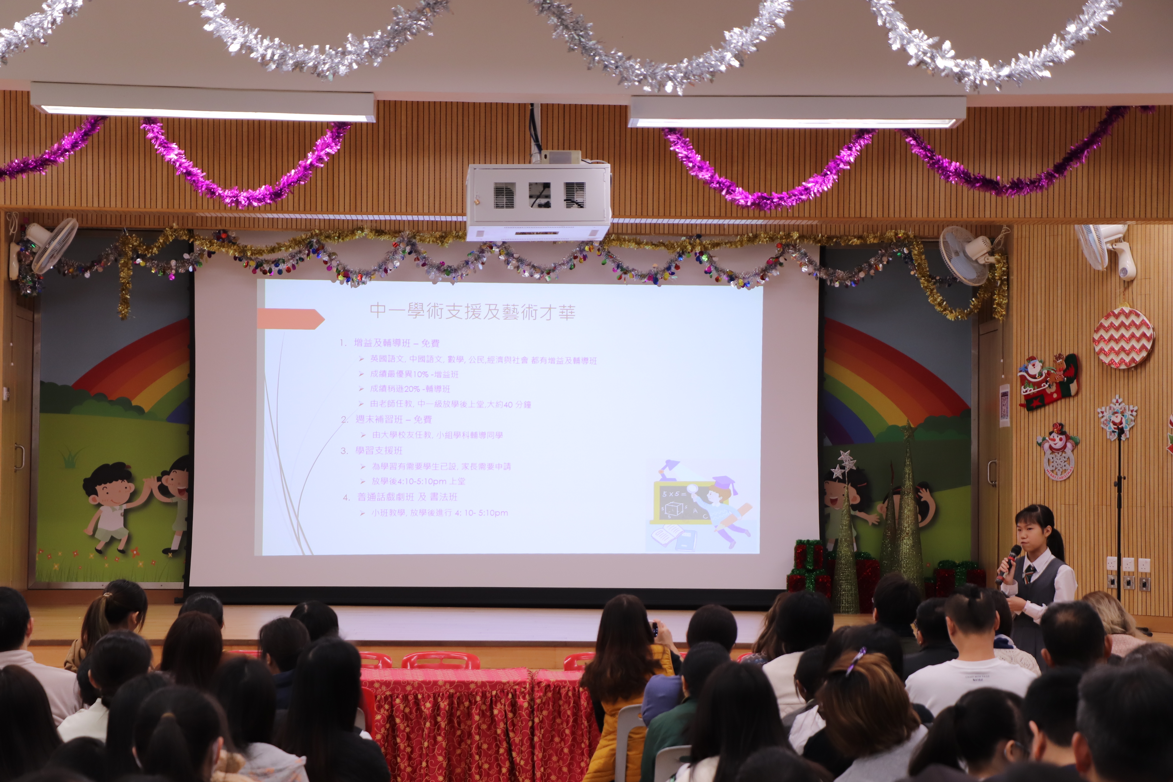 校友會主席更聯同2位幹事向一眾師弟妹分享面試的技巧及陪伴子女升中的心路歷程。