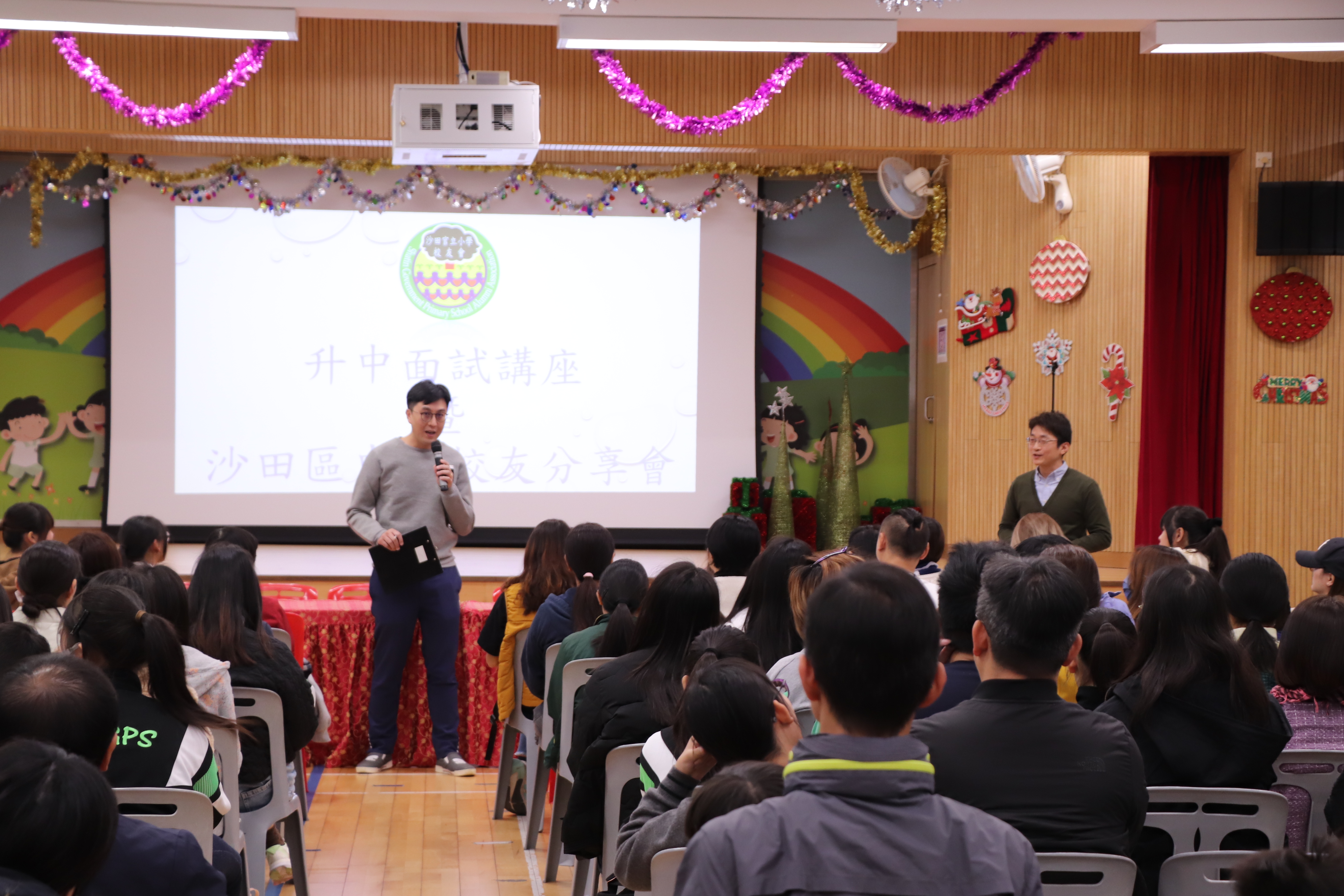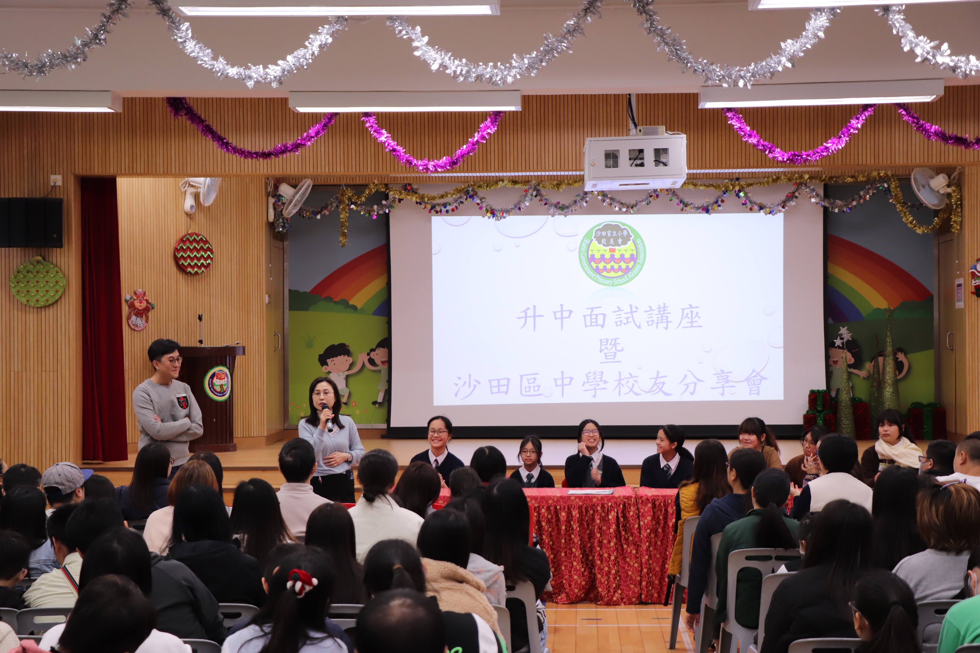「校友會升中面試講座暨沙田區中學校友分享會」已於12月14日完滿結束。當天校友會邀請了8位分別來自沙田官立中學、沙田祟真中學、沙田蘇浙公學、培英中學及樂善堂楊葛小琳中學的校友到來跟五、六年級同學分享就讀中學的特色及分享中學生活的體驗。同時,校友會主席更聯同2位幹事向一眾師弟妹分享面試的技巧及陪伴子女升中的心路歷程。