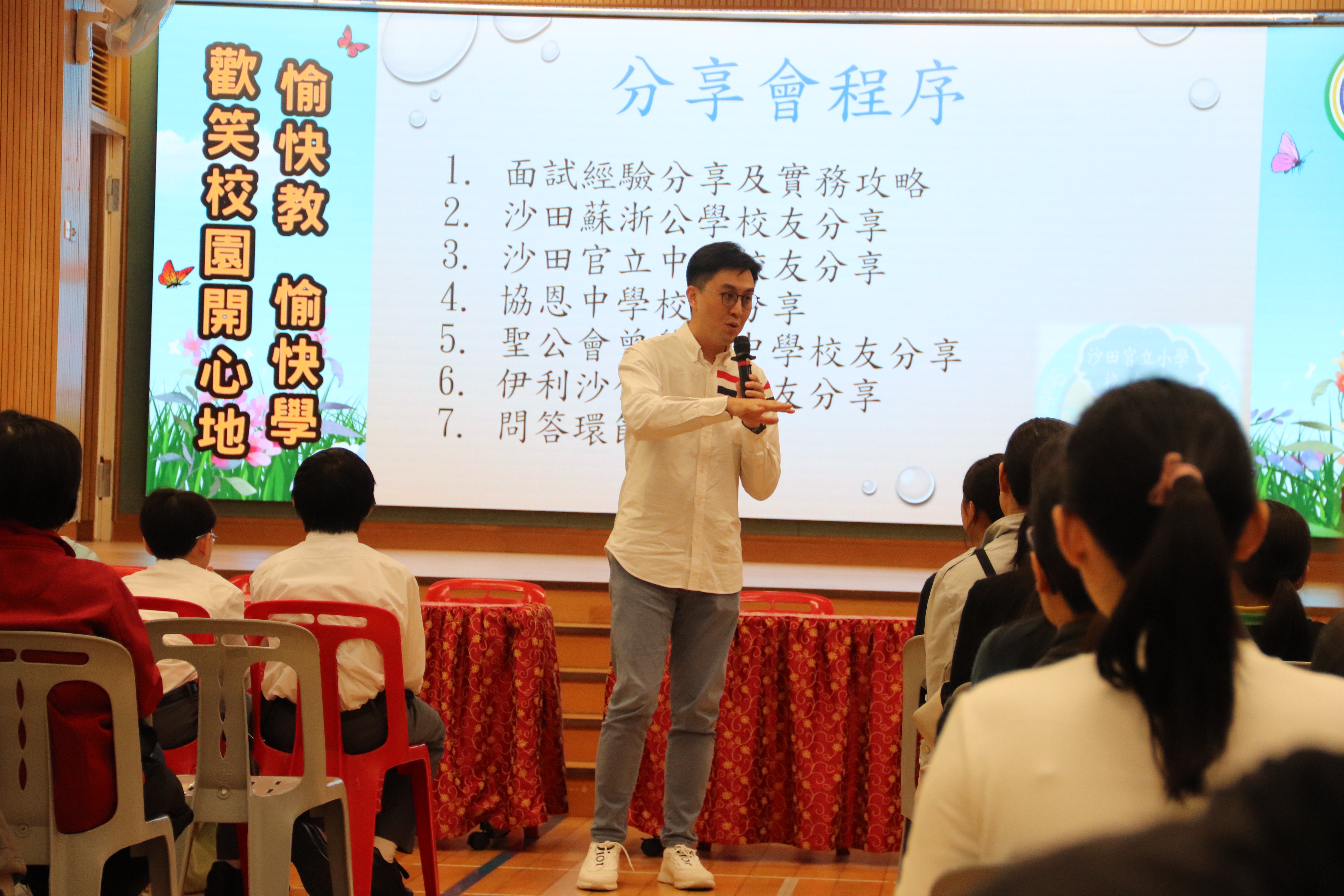 「校友會升中面試講座暨沙田區中學校友分享會」已於 12 月 13 日 圓滿結束。當天校友會邀請了 9 位分別來自沙田官立中學、沙田蘇浙公學、聖公會曾肇添中學、伊利沙伯中學及協恩中學的校友到來跟六年級同學分享就讀中學的特色及分享中學生活的體驗。同時,校友會主席更聯同 3 位幹事向一眾師弟妹分享面試的技巧及陪伴子女升中的心路歷程。 當天各位家長及同學的回饋正面,且十分欣賞各位校友的分享,大家都表示對中學生活多了認識,更了解面試的技巧。