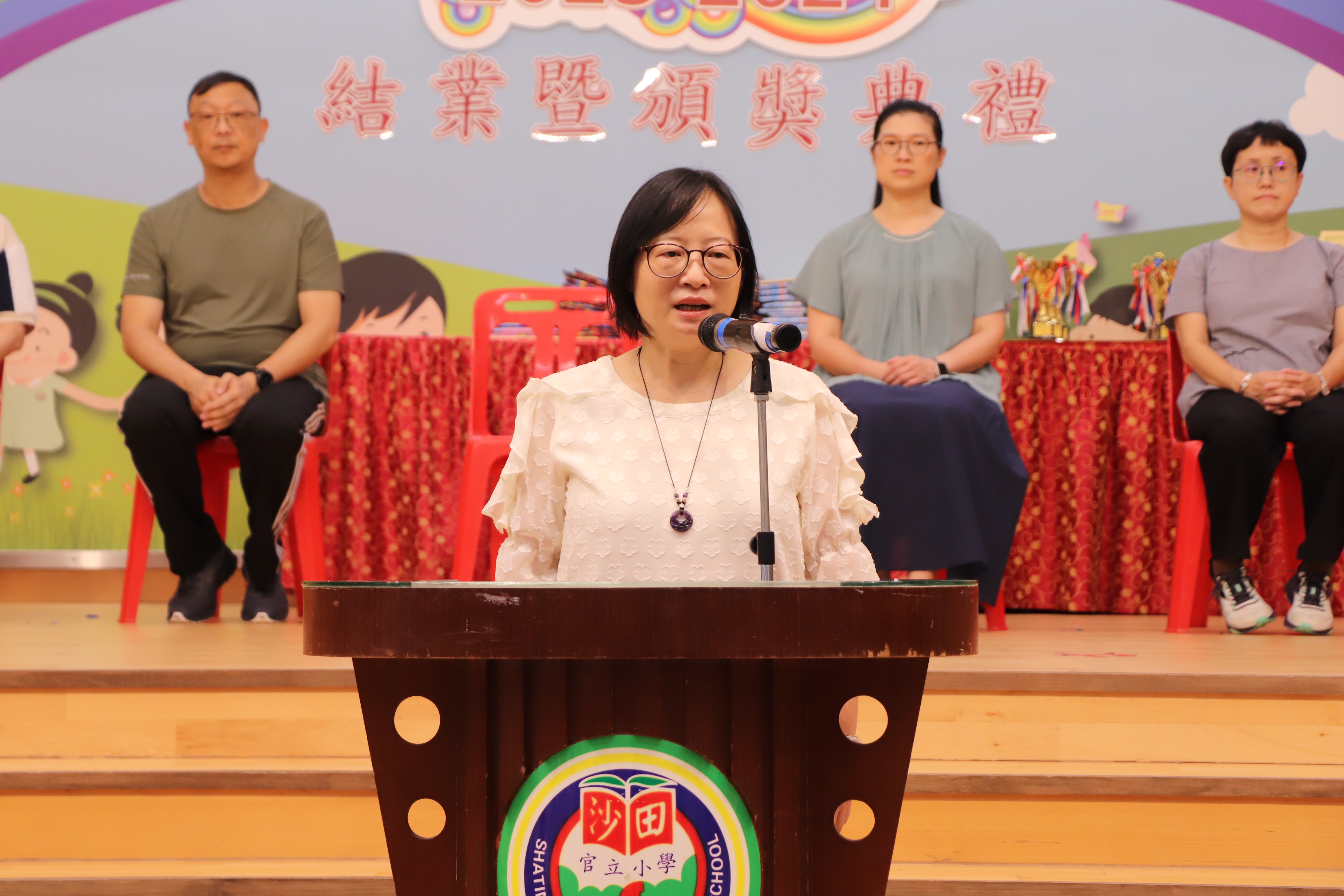 頒發各級獎項前,杜校長先訓勉同學要培養勤奮學習的良好態度。